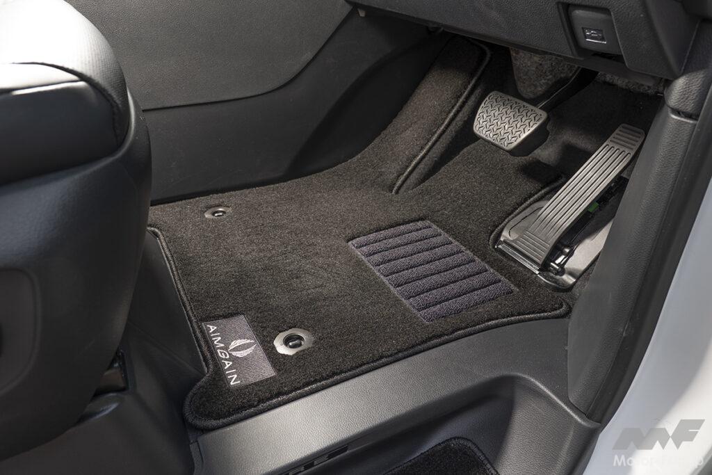 構成はフロントスポイラーとサイドスポイラー、リアスポイラーのみというもので、その造形はどれも薄型でシンプルなたたずまい。ただしフロントコーナーを流麗に立ち上げたジェントルなカナード形状を採用したり、リアの中央ボトムにはキレ味バツグンなディフューザーフィンを連ねるなど、ヴェルファイアらしいエッジ感をダイレクトに発揮できるのがポイントだ。