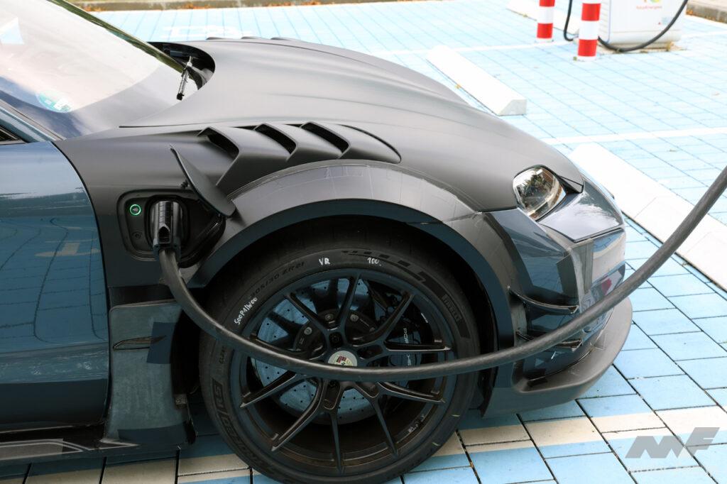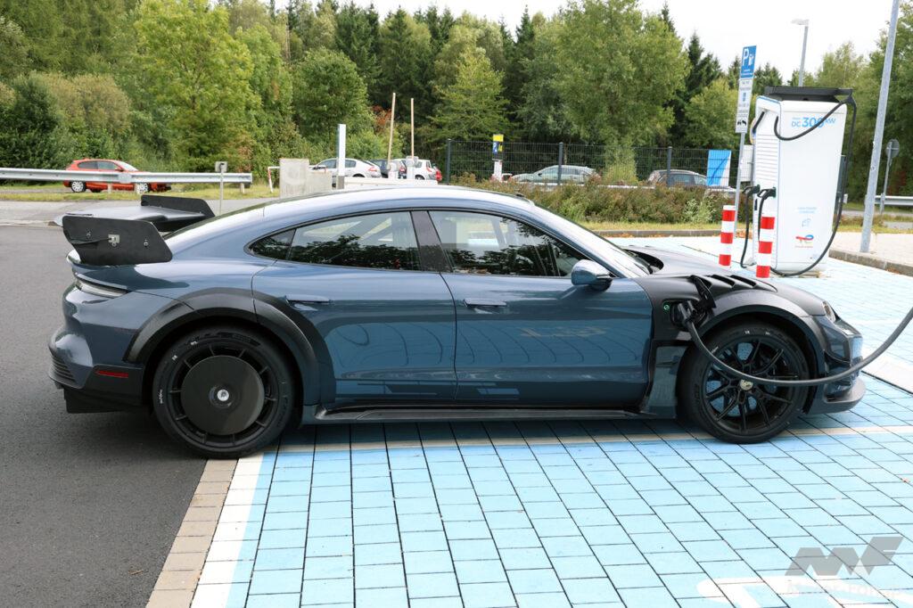 充電中の姿が撮影されたプロトタイプは、アグレッシブなエアロパーツを装備しており、当初はマンタイ・レーシングの私的プロジェクトと思われていたが、最近では、ポルシェ公式の新型モデルである可能性が高いと見られている。