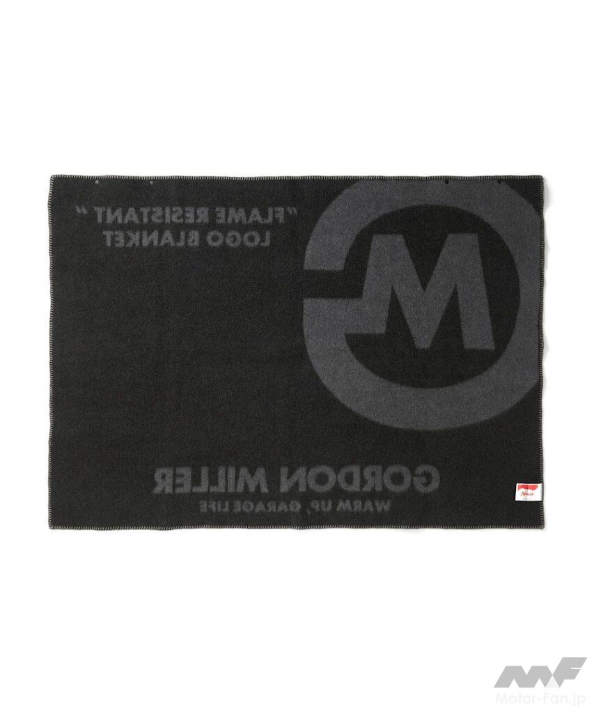 GORDON MILLERのロゴが大きくデザインされたコラボブランケットは、機能性とオシャレ感を兼ね備え、アウトドアシーンはもちろん、車中泊や車内での防寒対策としても心強い存在だ。