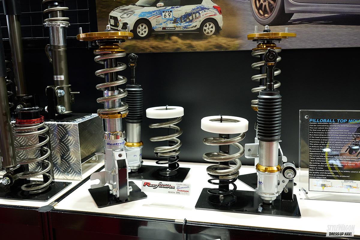 話題の新型車から往年の人気車まで、幅広い車種に向けた多彩なサスペンションキットを手掛け、技術力が国際的にも高く評価されているテイン。コーナリングの始まりや微妙な加減速にあわせ減衰力を適格に効かせることができる電子オプションユニット「EDFC5」でも話題を集めているが、今年の目玉はなんといっても「M.H.A.S.」だろう。車高調の1新製品として開発が進むそれは、面倒な車高調整作業を“手動”ではなく“電動”で行える画期的ユニット。稼働専用モーターと油圧タンクを別体とする新機構となっており、アル&ヴェルやエルグランド、オデッセイといったLクラスミニバン向けとして展開すべく、現在様々なテストを行っている。会場にはプロトタイプが先行展示されたが、発売目標は2026年頃と広報担当。残念ながらかなり先だが、まずは首を長くして待とう。