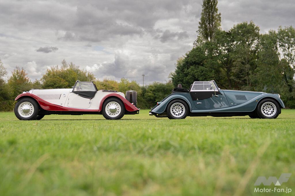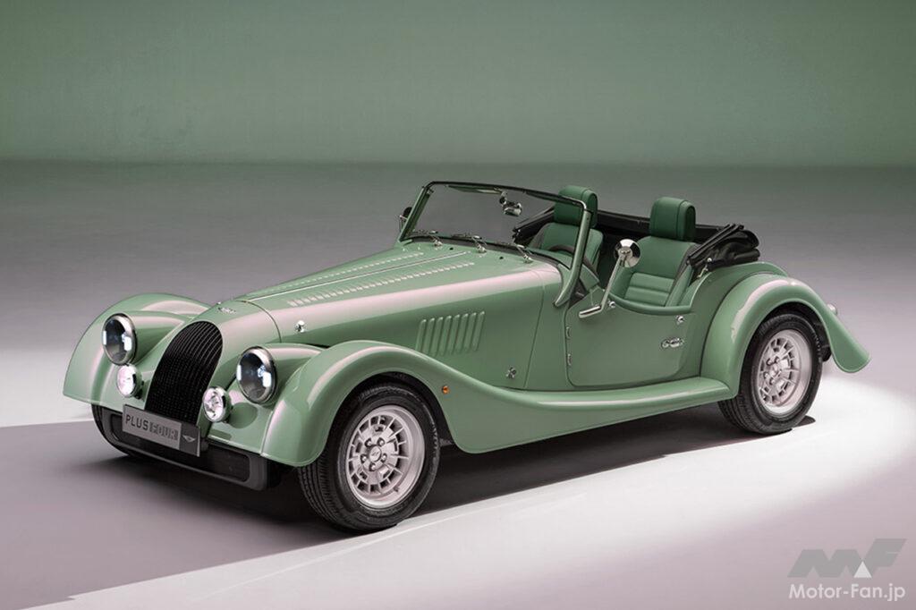 現在発売中のプラス・フォーは、モーガンのスポーツカーを最も純粋に表現したモデル。そのデザインは、⾃動⾞業界で最も個性的かつ永続的なもののひとつであり、その系譜は、モーガンの歴史的な本拠地である英国マルヴァーン・リンクで今もなお⽇々実践されている独⾃のコーチビルト⽣産⽅式に表れている。