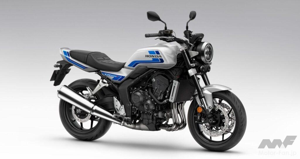 CB1000Fは、ウルフシルバーメタリック(ブルーストライプ)、ウルフシルバーメタリック(グレーストライプ)、グラファイトブラックの3色設定。CB1000F SEは、ウルフシルバーメタリック(ブルーストライプ)の1色設定としている。