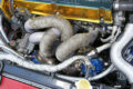 組み合わせるタービンは、650psまで狙える大風量のボルグワーナーEFR7670。EXマニには肉厚のシームレス管を採用した米オートレース製を使い、ウエストゲートはツイン制御としている。最高出力は、ブースト圧1.9キロ時に568ps/7113rpm、69.8kgm/4351rpmという強烈なスペックだ。