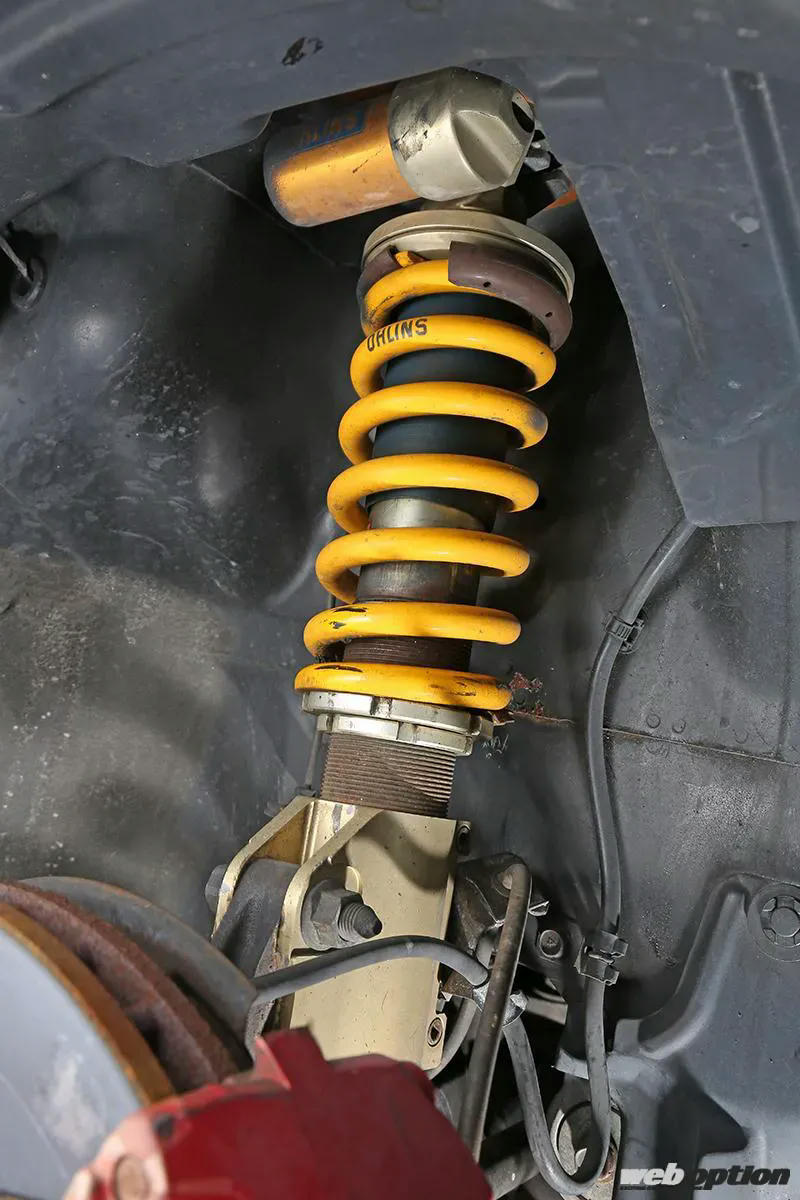 足回りは別タンクを備えたオーリンズのフラッグL(F12kg/mm R10kg/mm)を軸にセットアップ。フロントLSDはラリーアート製をチョイスしている。