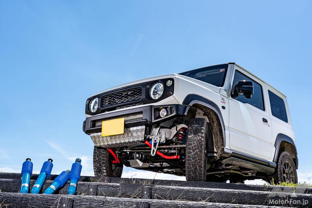 他にもボトムを切り上げたスタイリッシュなスポーツカウルから機能的でオフロードスタイルの演出に欠かせないマッドガードⅢ、貼るだけでドアハンドルやフューエルリッドなどにキズが入るのを防ぐ各種プロテクターまで大小様々なアイテムがスタンバイ。リフトアップ関連においても予算やアップ量、セッティング幅など好みに合わせて選べるようにラインアップを充実させている。デモカーに装着しているのは、40㎜アップを実現するバトルズのVFSバージョンAコンプリート。キャスター角を補正するアシストキット、車軸のズレを補正するラテラルロッドもセットになったコンプリートの名に相応しいパッケージとなる。