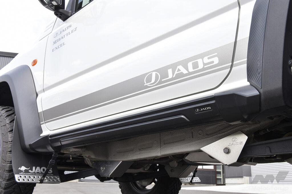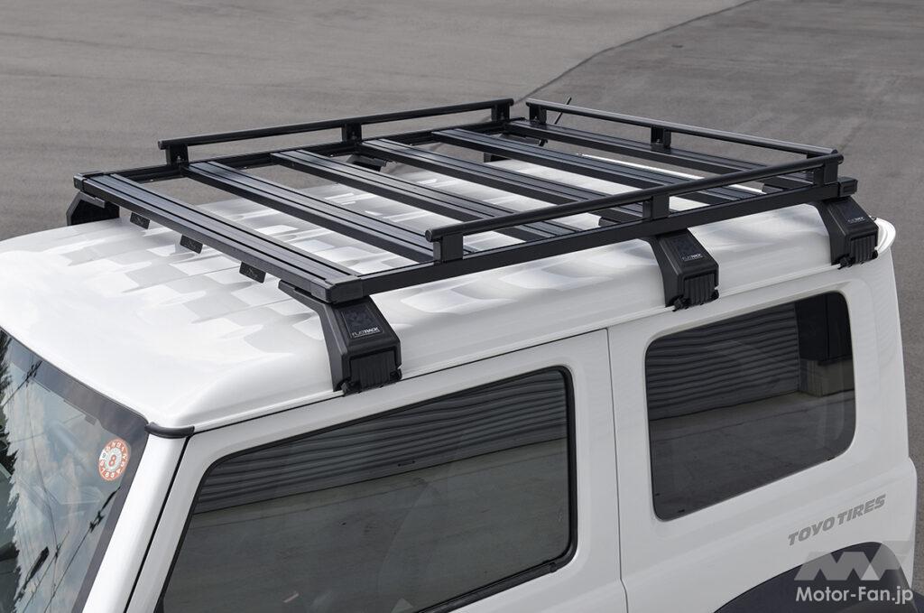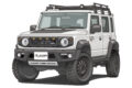 今年で創業40周年を迎え、オフロード車に特化したパーツメーカーとしては長い歴史を持つジャオス。ランクルやデリカなど王道の車両は数多くのパーツを取り揃えているが、フルモデルチェンジした現行モデルからジムニーも積極的に力を入れる。クルマのデビューからかなりの年数が経過した現在ではパーツラインアップもかなり充実しているが、新作もコンスタントに発表している。例えばボンネットプロテクターは貼るだけでボンネットのキズなどを防ぐと共に、カスタム志向から人気が高いザラザラした表面仕上げでドレスアップ効果も高い。またオプション品を組み合わせて自分好みの使い方が楽しめるフラットラックは、フットをインジェクション成型樹脂に変更したタイプBを追加リリース。スチール製フットを採用したタイプAも引き続き併売する。