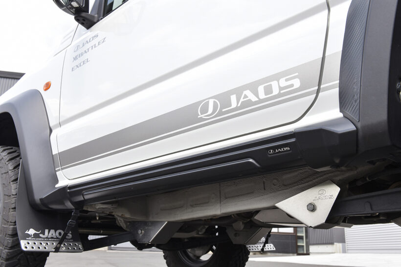 アイテム(カスタム) ノマド専用品を開発中! 『ジムニー』を知り尽くした“ジャオス”のカスタムパーツはどれも機能的でカッコいい!!【写真・11枚目】 クロスカントリービークルを連想させるアグレッシブな造形がウリのフロントスポーツカウル。デモカーはマットブラック塗装品を装着。 JAOS STYLE JB74 JIMNY SIERRA 専用丸型テールを採用することで大幅なショート化を実現したリアスポーツカウル。新たにバックセンサーを移設できる4型用を設定した。 ■フロントスポーツカウル(マットブラック) 7万7000円 ■フロントグリル(マットブラック) 5万2800円 ■ボンネットプロテクター 3万800円 ■フロントスポーツカウル用スキッドプレート 1万3200円 ■リアスポーツカウル(マットブラック) 10万3400円 ■ドアハンドルプロテクター 5500円 ■オーバーフェンダープロテクター 8800円 ■フューエルリッドプロテクター 5500円 ■サイドアンダーガーニッシュ 4万8400円 ■フラットラック1250×1400 type-B 14万800円 ■フラットラックオプションウォールバー 8360円 ■フラットラックオプション ウィンドディフレクター type- A 4400円 ■マッドガードⅢスポーツカウル専用フロント 1万5400円 ■マッドガードⅢスポーツカウル専用リヤ 1万5400円 ■けん引フックフロント左側 1万5400円 ■アームプロテクターフロント 2万9700円 ■アームプロテクターリア 2万4200円 ■ドアインナープロテクター 8800円 ■BATTLEZマフラーZS TCスポーツカウル用 8万1400円 ■BATTLEZリフトアップセット VF -R ver.A(40)コンプリート 18万4800円 ■BATTLEZステアリングダンパー 2万900円 ■BATTLEブレーキパッド type-EX フロント 1万7600円 ■EXCEL JX3(16×6.0J・マットブラック) 3万5200円/1本 スクエアな形状でジムニー乗りに人気のフラットラック。そのままでも使えるが、オプションのウォールバーを装備すれば、より多くの荷物を積むことができる。 新作のフット部分をインジェクション成型樹脂に変更したタイプB.。形状的にフラットラックとの相性も良さそうで、ジムニーシリーズとのマッチングも良し。 純正ボンネット形状に合わせてカット済みだから、貼るだけでボンネットを保護できる。端にさり気なく入れたジャオスのロゴがアクセント。 6mm厚のステンレス板で作られたけん引フックは、同社のスポーツカウルだけでなく純正バンパーにも装着可能(一部カットなどが必要)。 サイドアンダーガーニッシュは純正サイドと比べてかなりスリムで、乗り降りの際に足がぶつかりにくい。素材は塗装が不要なAESを採用。 跳ねた飛び石が当たってキズが付きやすいリアの純正オーバーフェンダー。カーボン調のオーバーフェンダープロテクターで保護できる。 安定したハンドリングを実現するステアリングダンパーもリリース。純正比約15%強化タイプとなり、純正と付け替えるだけで効果を実感。 ツインスポークのエクセルJX3。スポークにリブを設けることで骨太感を強調。冷却フィンをイメージしたディスク外周のデザインも力強さをもたらす。 40mmアップのスプリングは、チタン配合材を使用して耐ヘタり性を大幅に向上。そしてダンパーは微振動を吸収するハーモフレック機構を搭載する。 マフラーは位置などを煮詰めたスポーツカウル専用品。出口はチタンカラーとスタンダードなステンレスの2種類。純正バンパー用も設定。 ジャオスの次なる展開はジムニーノマド。スポーツカウルはデイライトを内蔵し、フロントグリルにはトレンドのマーカーランプを仕込むなど、既存のパーツをバージョンアップさせた商品も検討している。ダミーボルトをあしらったフェンダーガーニッシュの発売も期待したい。マフラーの開発も進めており、JQR認証をクリアすれば近いうちに発表できることだろう。ノマドユーザーはもちろん、納車待ちの人もジャオスのパーツに乞うご期待。 この画像の記事を読む