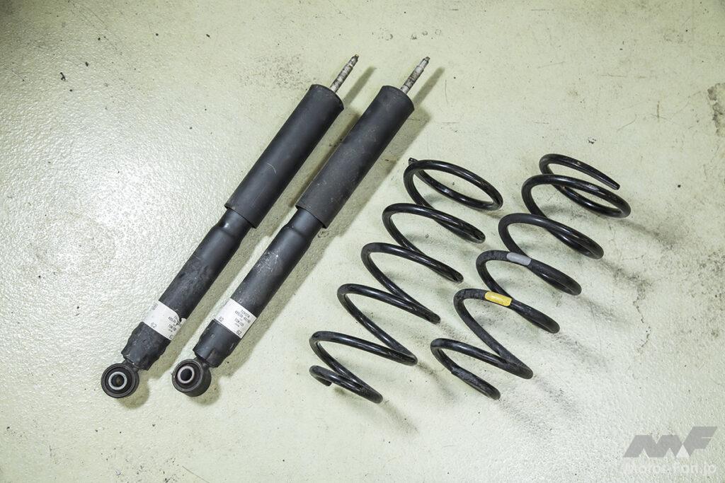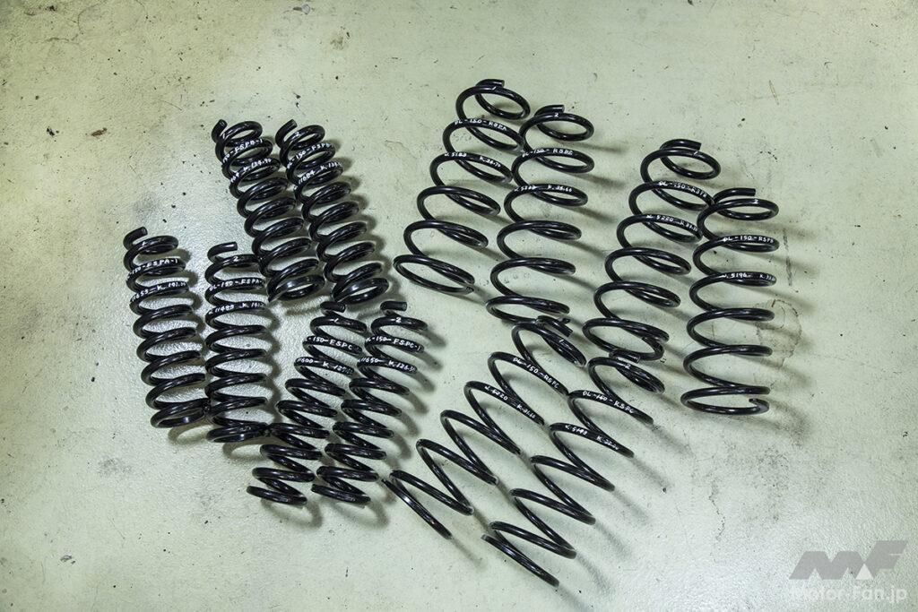開発段階の今回は、アレコレと装着してみることに。わずかにリフトアップされるヴィジュアルは狙い通り。乗り味に関しても、基本的にネガティブな面は見られなかった。それどころか純正よりも足もとがバタつかず、アタリの柔らかい快適な乗り味を感じた。リフトアップを目的とせず、乗り心地や運動性能の向上という目的だけで選んでもいい気がする。ただし、スプリング自体の選択肢に始まり、それに組み合わせる減衰力を含めて無数とある設定値をどこへと持っていくか。それを探るのが今後の課題だ。これがキマれば、さらに気持ちいい乗り味をもたらしてくれると思わせた。