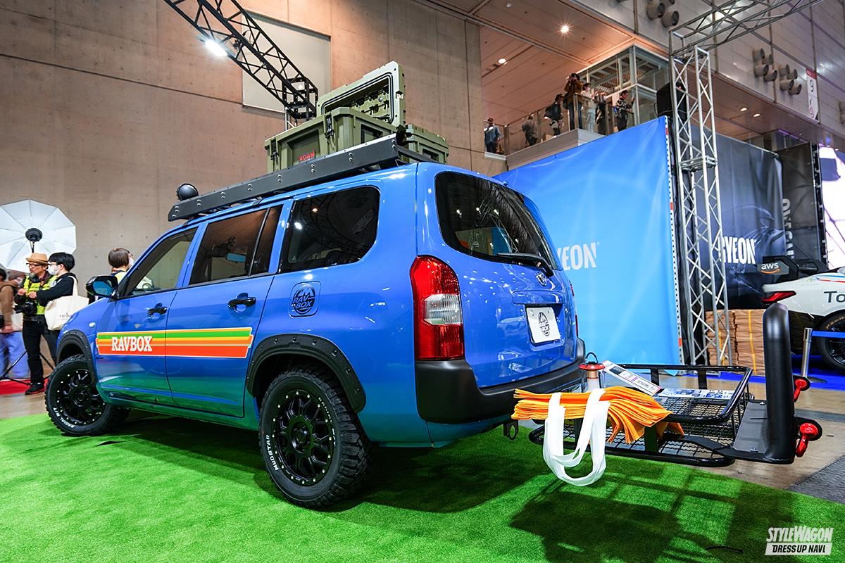 RAV4用アイテムを主力に、軽カーからプラド、ハイラックスなど豊富な車種を展開するネクサスジャパン。2024年イチオシの車種がプロボックスだ。「価格が安くて、ちょっといじるとかっこよくなる」と専用アイテムを開発。これまでプロボックスユーザーはハイエース用を加工するなどしていたバンパーガードを数タイプ設定。またローフォルムを演出できる専用設計のルーフラックも開発。アウトドアだけでなく、仕事用としても使える堅牢さを誇る。