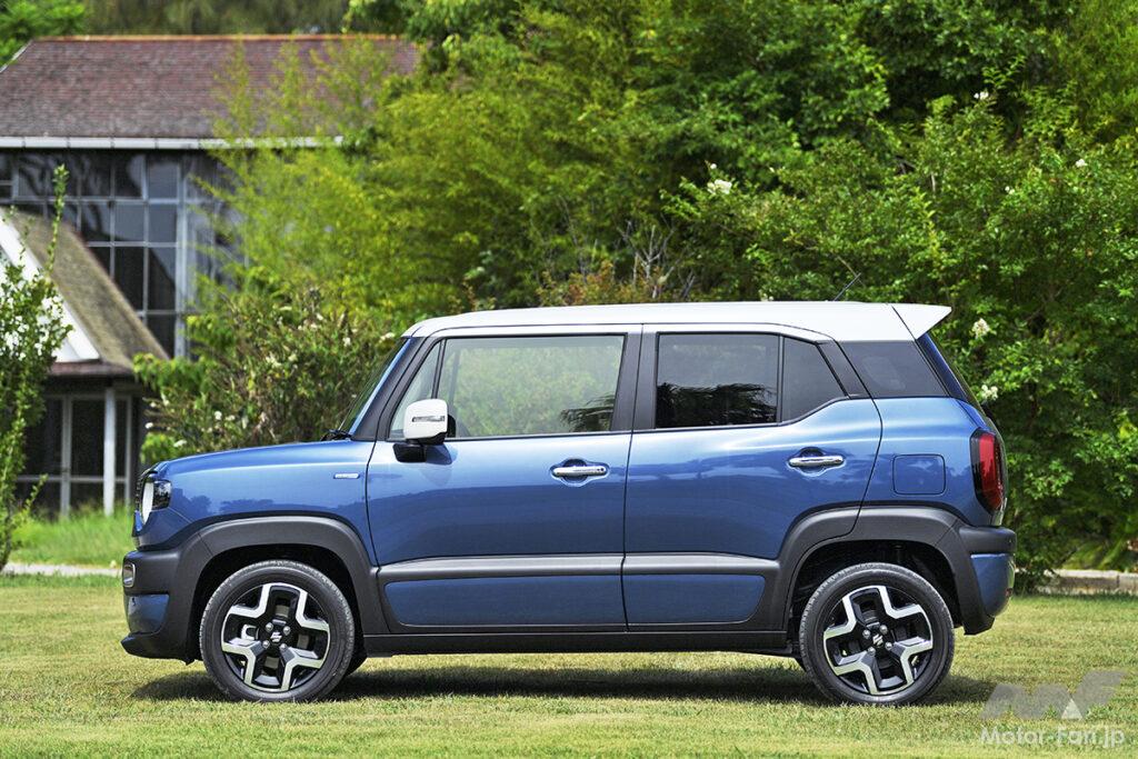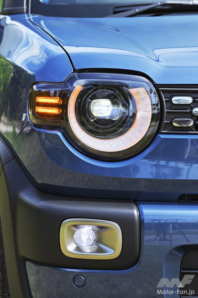 女性ユーザーが約2/3を占めるAセグメントSUVのクロスビーが大幅変更を受けた。エンジンの変更により型式は変わるが、車体を踏襲。前後ドアやバックドア、ガラスまわりなども流用しつつ、前後ビューを変えることで、適度なタフ感を強調する。顔つきは、人間の目を感じさせる半円に近いシグネチャーが印象的で、フロントバンパーの厚みも増した。フロントマスクを上から眺めた際のカーブが大きくなり、ワイド感を強調。同時に、角を丸めた四角いモチーフをヘッドランプまわりやホイールキャップなどの細部に反映することで、支持層の女性から敬遠されない適度なタフ感にまとめている。