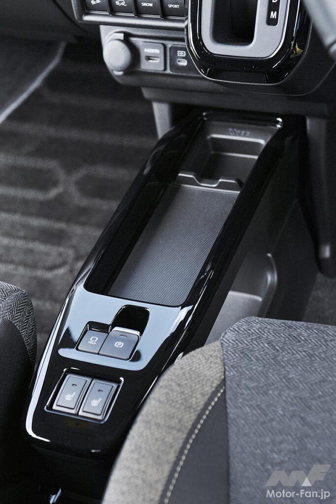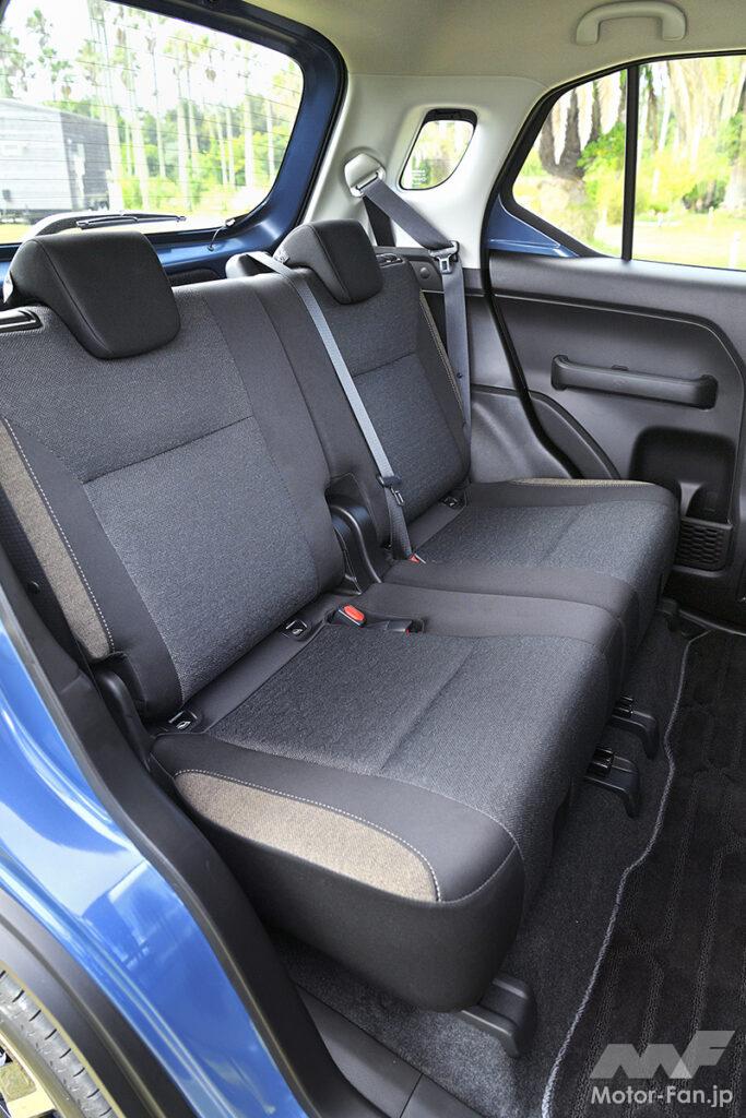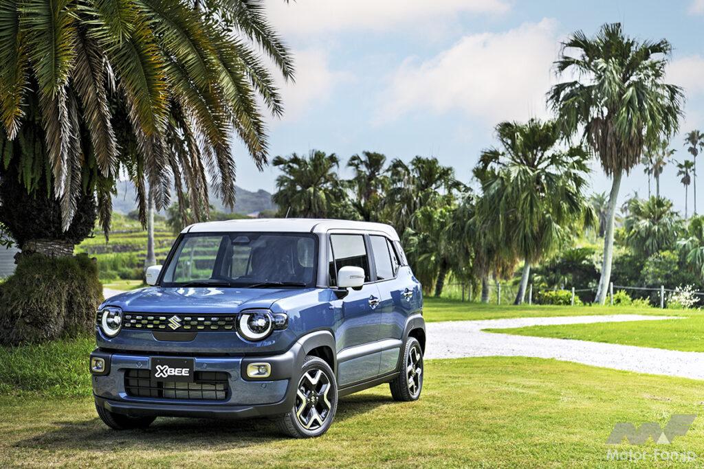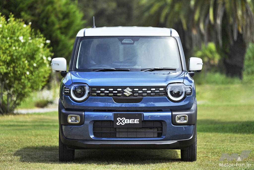 女性ユーザーが約2/3を占めるAセグメントSUVのクロスビーが大幅変更を受けた。エンジンの変更により型式は変わるが、車体を踏襲。前後ドアやバックドア、ガラスまわりなども流用しつつ、前後ビューを変えることで、適度なタフ感を強調する。顔つきは、人間の目を感じさせる半円に近いシグネチャーが印象的で、フロントバンパーの厚みも増した。フロントマスクを上から眺めた際のカーブが大きくなり、ワイド感を強調。同時に、角を丸めた四角いモチーフをヘッドランプまわりやホイールキャップなどの細部に反映することで、支持層の女性から敬遠されない適度なタフ感にまとめている。