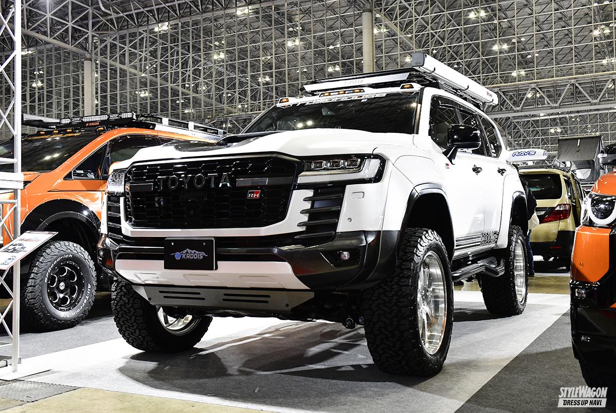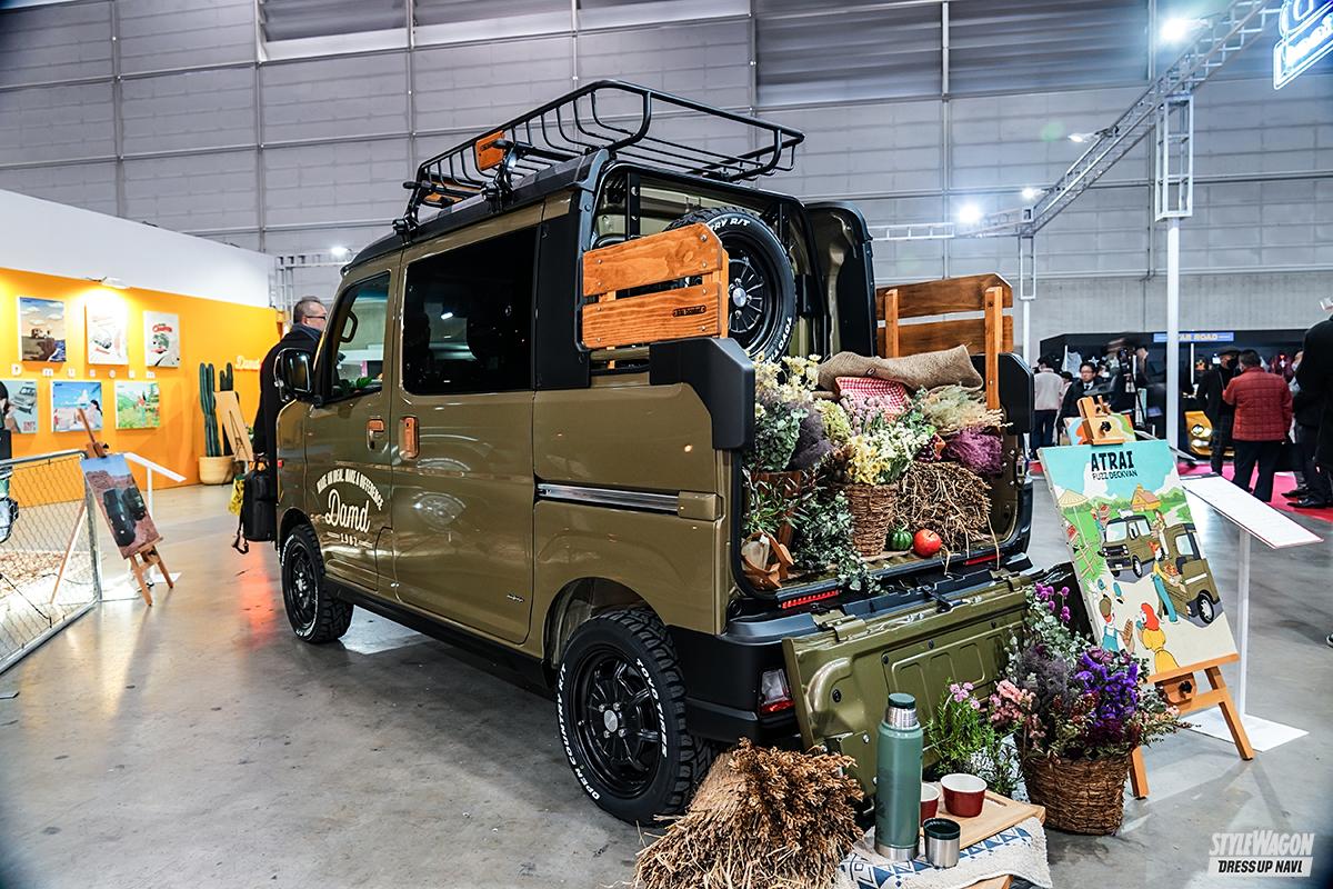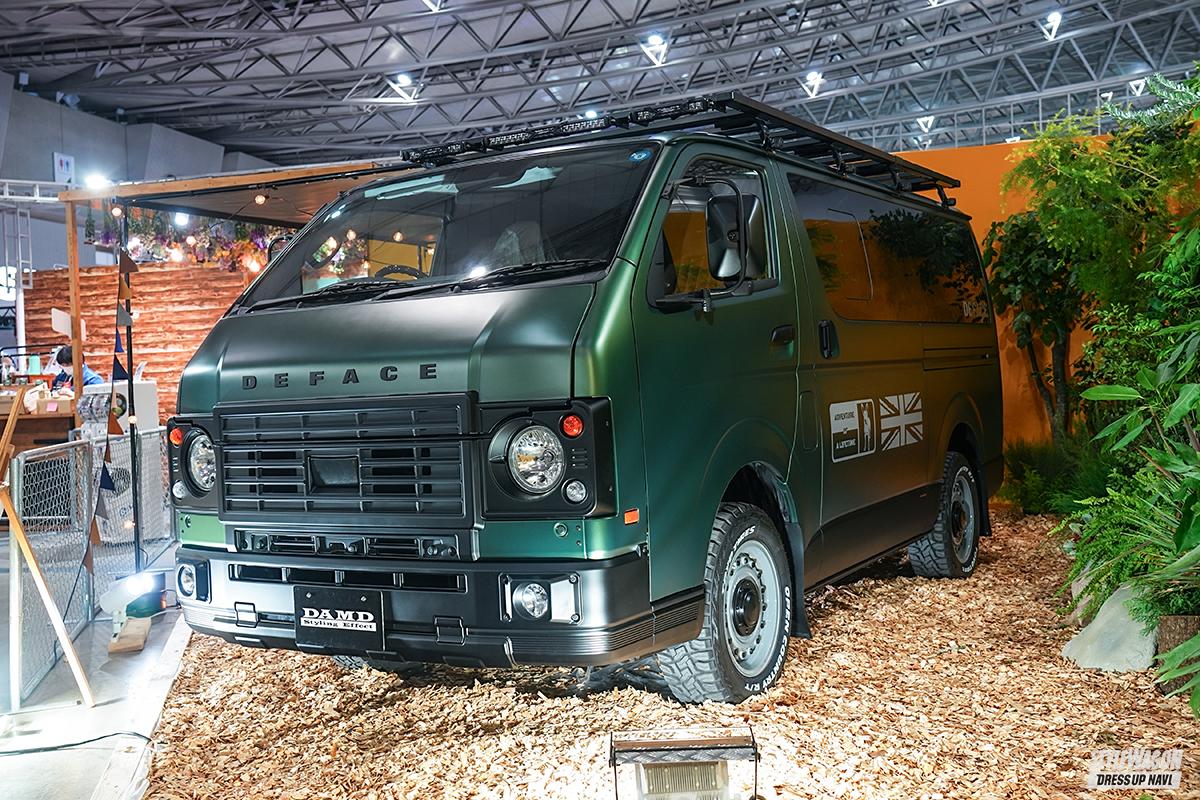 ジムニー&ジムニーシエラをベースとするフェイスチェンジキット「リトル」シリーズで人気を博すダムド。今年はリトルシリーズの新作に加え、新たにハイゼットカーゴをベースとする「FUZZ」を発表。シボレーC10をイメージしたアメリカンクラシックなフェイスを演出する。会場には兄弟車アトレー&デッキバンをベースとした2台を展示していた。また、久々の乗用車となるハイエースベースの「DEFACE」もデビュー。こちらはディフェンダーをオマージュするヘビーデューティさが魅力。