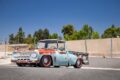 インテリアもパッと見はノーマルを維持しているが、電動パワステとヴィンテージ・エア製のエアコンを備える快適仕様。エアサスの車高コントローラーも、敢えて古臭く見える汎用スイッチを使っている。