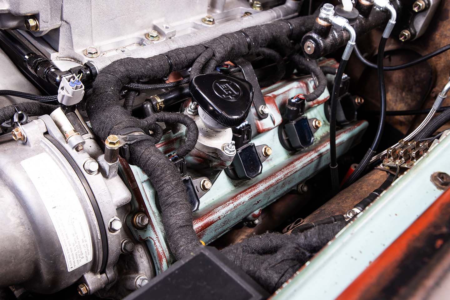 3UZの制御にはCAN通信が採用されているためエンジンスワップのハードルが高いのだが、そこはフロリダ州にあるレクサスV8.comという、ECUとワイヤリングの専門店がサポート。