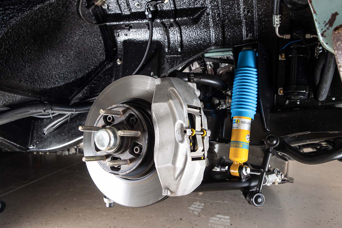 前後ディスクブレーキはLS430から移植。本来のサス形式はフロントがコイルスプリング式のソリッドアクスル、リヤがリーフスプリング式リジッドだが、それをロワアームでキャンバー調整ができるフロントダブルウィッシュボーン、コントロールリンクとショックアブソーバーを追加したリヤ4リンクに作り変えた。