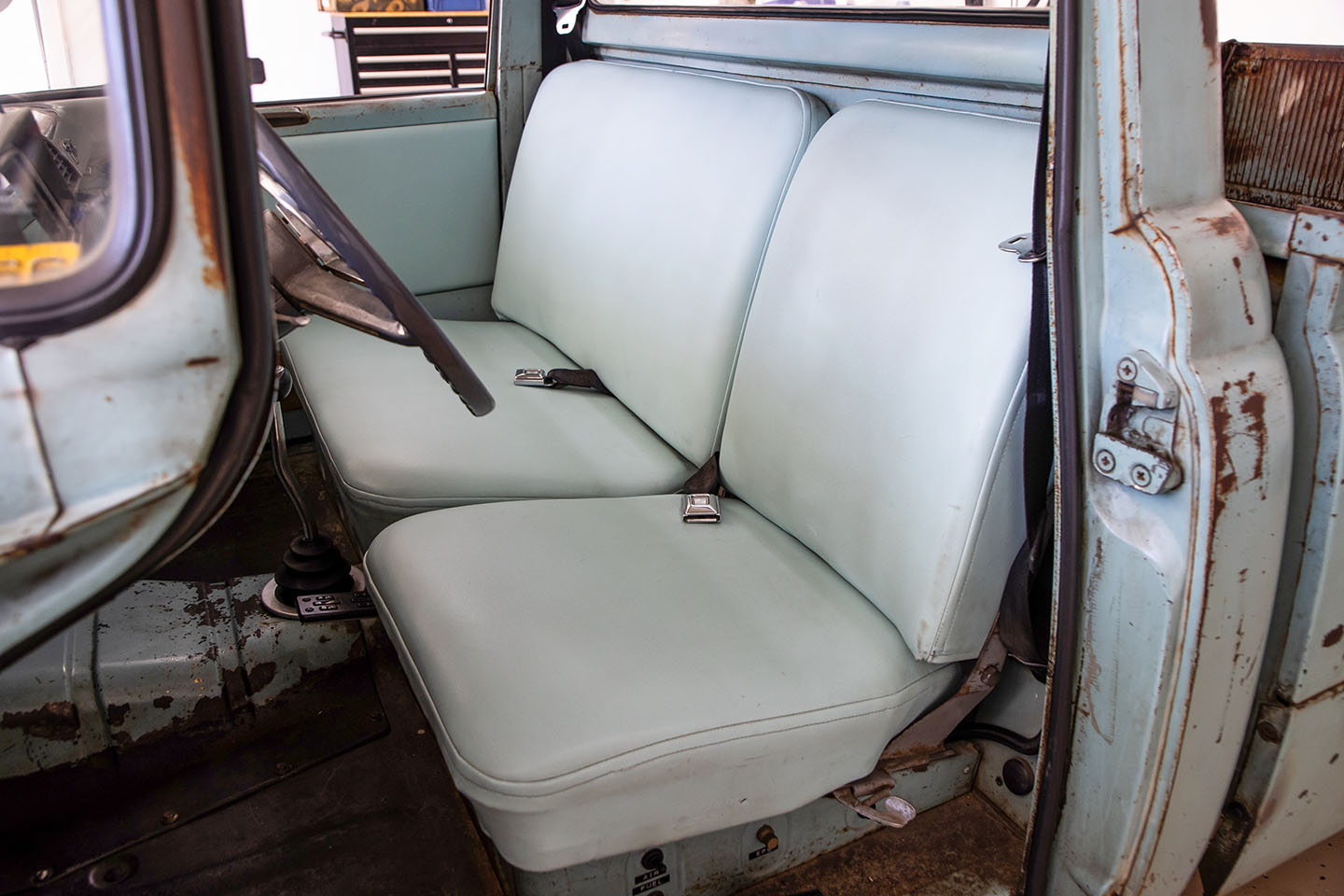 全体を通してこだわっているのは、年式なりの古さとスタウトの純正っぽさを残しながら、デイリードライバーとして快適に使える仕様に仕上げること。ステアリングは電動アシスト式のラック&ピニオンをプリウスから移植してある。