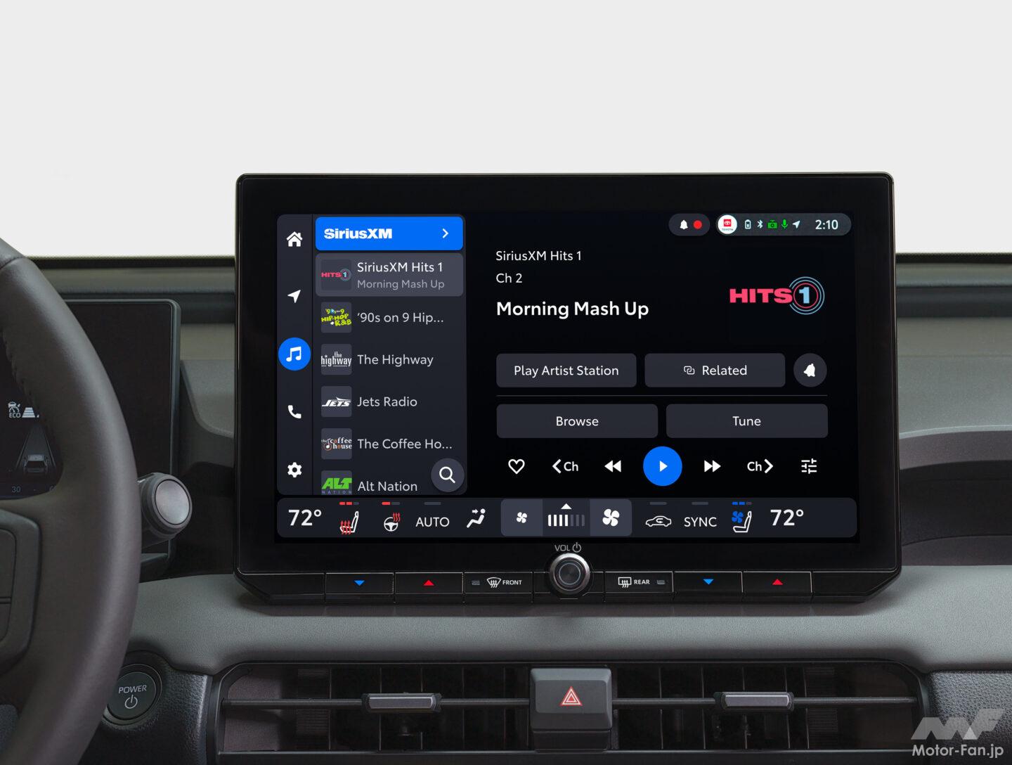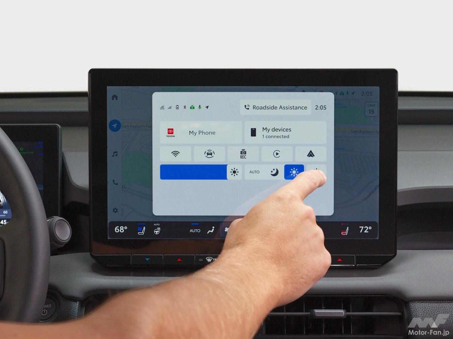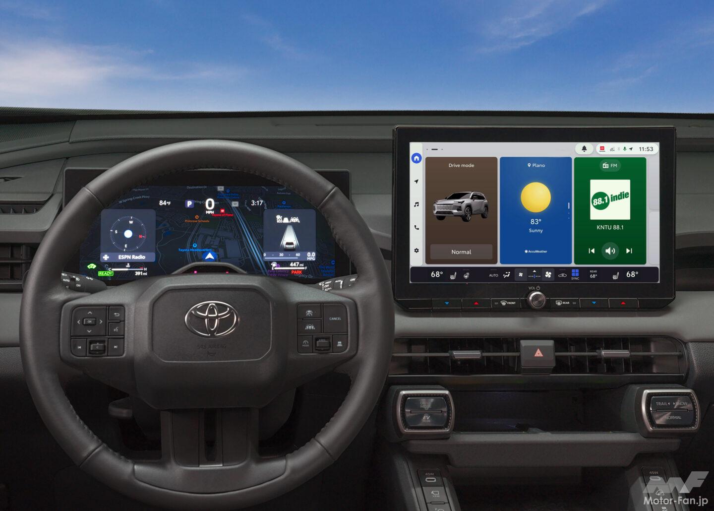 トヨタの車載マルチメディア体験が、初めてマルチインフォメーションディスプレイ(MID)と緊密に連携した。ネイティブナビゲーションがMIDでフルスクリーン表示可能となり、運転席のデジタルメータークラスター内に地図やターンバイターン案内を表示。運転の快適性を向上させる。また、最新世代のトヨタオーディオマルチメディアにはドライブレコーダーが標準装備され、社外品のドライブレコーダーが不要となった。