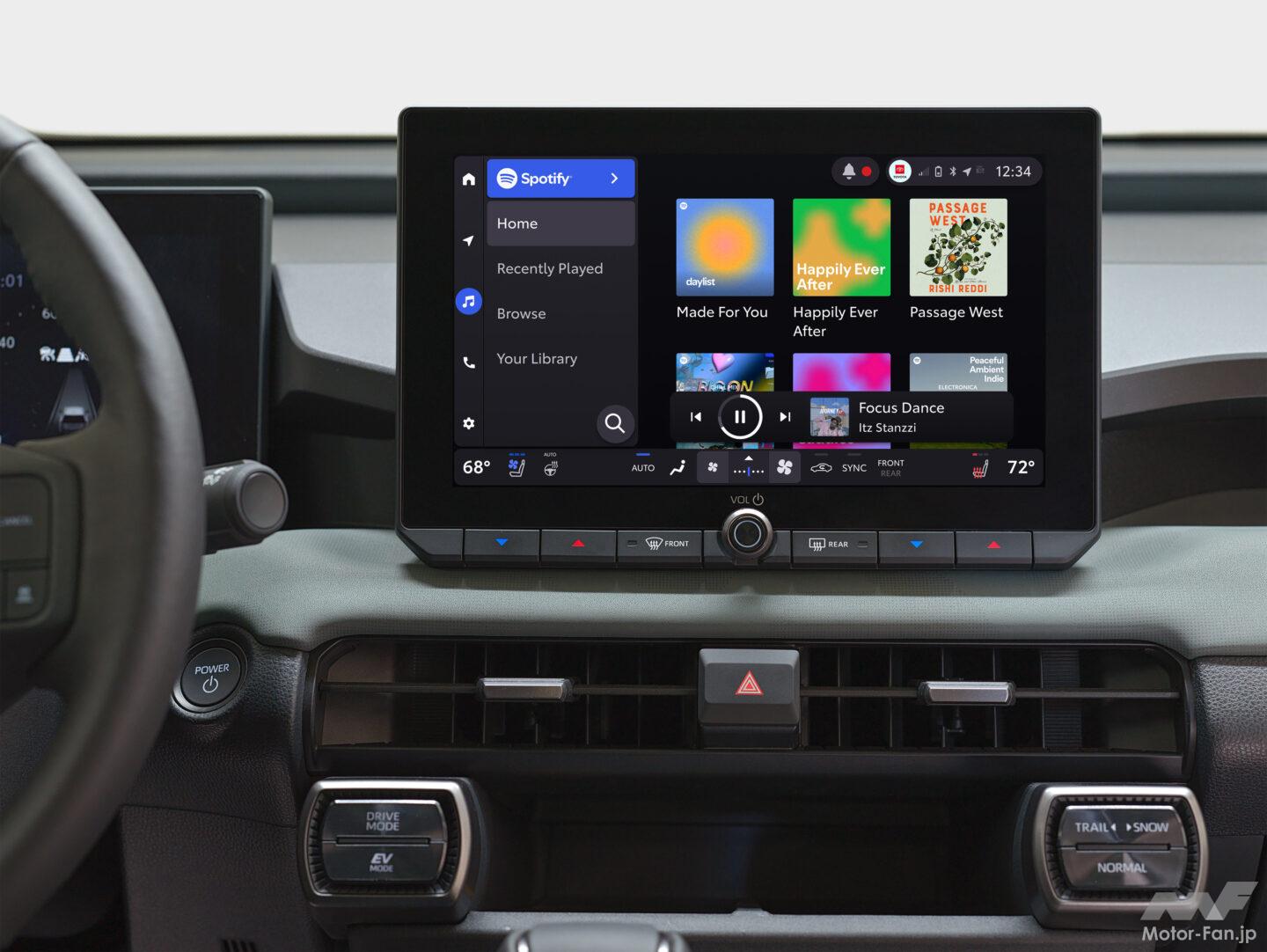 注目すべきは設定可能なホーム画面がUIに追加された点だ。ナビゲーション、ドライブモード、オーディオ、接続済みスマートデバイス、天気情報など、個別のウィジェットを用いて好みの表示をカスタマイズすることができる。さらに「クイックコントロールメニュー」が追加され、タッチスクリーンの右上領域から常時アクセスすることができる。Bluetooth接続・画面輝度調整・明暗モード切り替えといった頻繁に使用する項目、ワンタッチでのロードサイドアシスタンスを呼び出して、先進運転支援システム(ADAS)機能のオン/オフ切り替えショートカットなどの設定画面をすぐに開くことができる。もちろん、Apple CarPlay & Android Autoとのワイヤレス接続にも対応している。