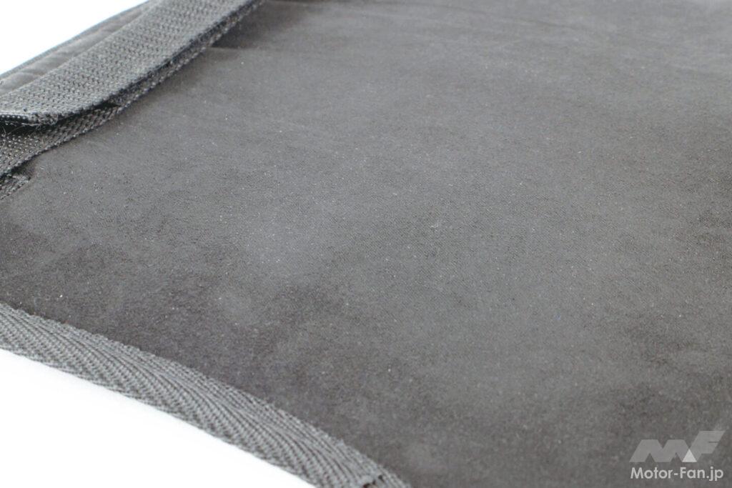 同品を装着して着座時、ヒートシート本体のズレを防止するため、裏面にはスエード素材を採用。これによりシート等との摩擦度が増してしっかりとグリップし、ヒートシートのズレを防止。