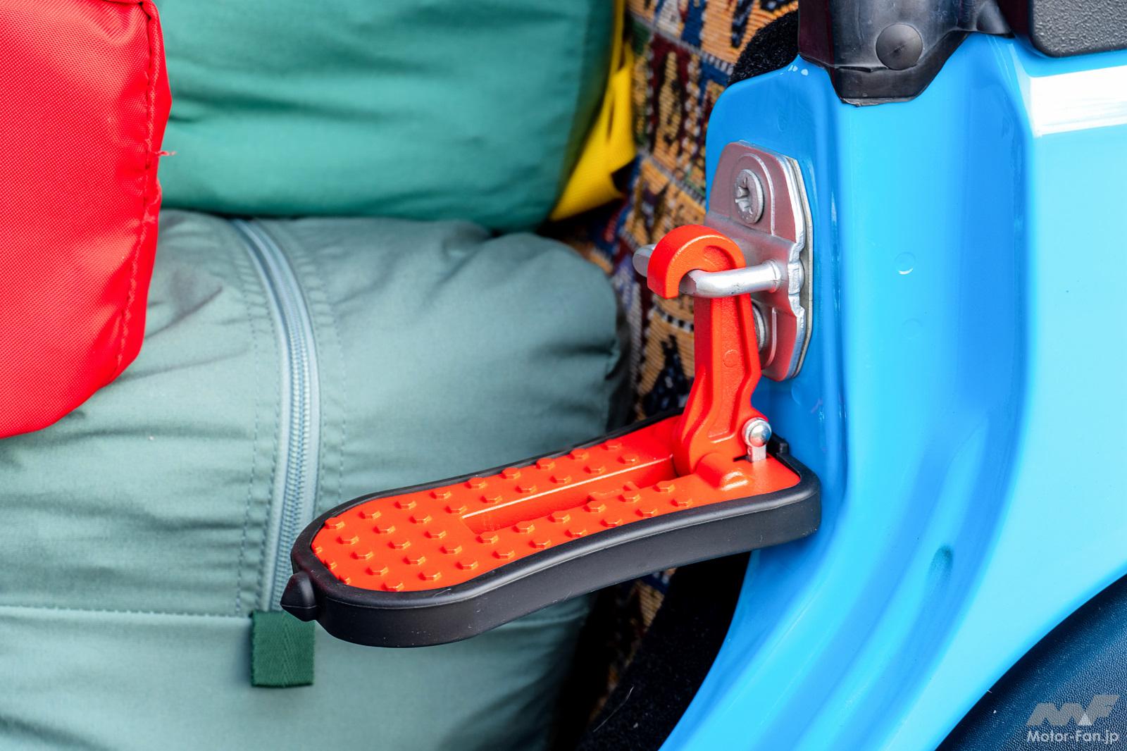 ところが、「ジープ・ラングラー」は本格的なクロカン4WDゆえ車高が高く、ルーフラックやルーフボックスを取り付けた場合は荷物の上げ下げに苦労する。そのために脚立を持ち歩くのは面倒なので、筆者はドアフックに引っ掛けるだけでステップとなる「ドアステップ」を常時携帯している。
