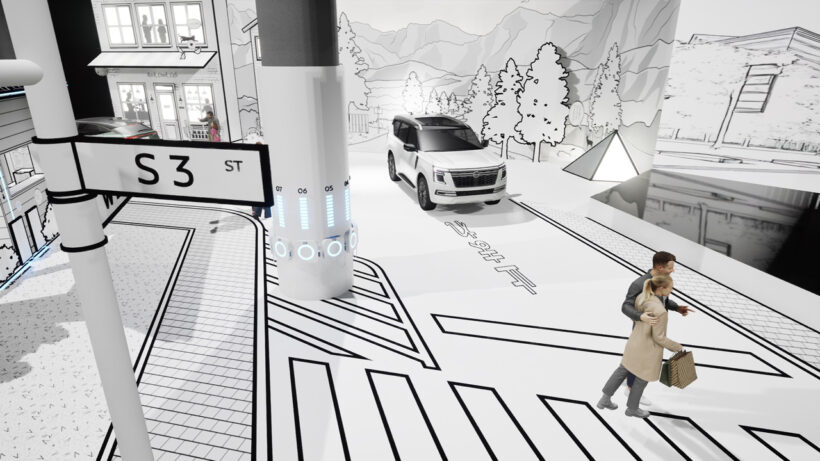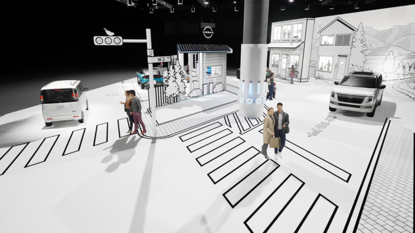 日産ブースはマンガの世界を再現! モノクロの中で、新型エルグランドが初お披露目【ジャパンモビリティショー2025】