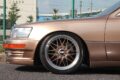 ベースは北米仕様。まず濃い目のゴールドとブラウンメタリックで上下を塗り分けた2トーンのボディカラーは、実は全塗装されたもの。ゴールドはメルセデスベンツの純正色を2色混ぜ合わせたオリジナルで、言われなければレクサス純正のように思えてしまうのが技あり。加えて、ボディ同色でまとめられたフロントグリルやホイールも、見た目の印象を変えるのに一役買っている。