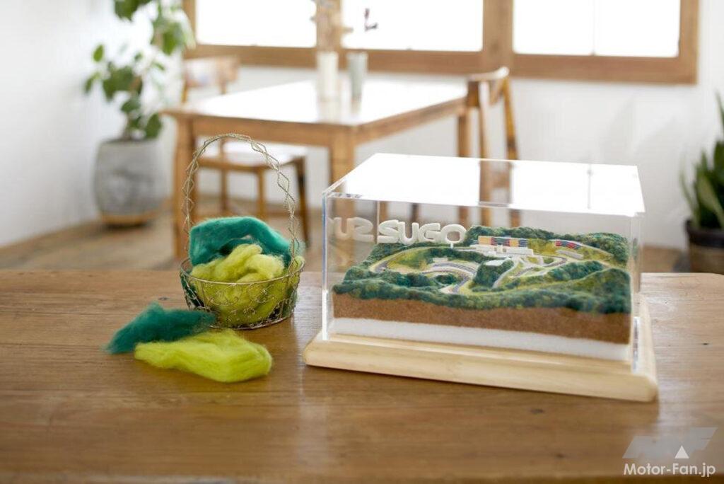 2025年に創立50周年を迎えたスポーツランドSUGOのインターナショナルレーシングコースと周辺の山々をA4サイズに収めたジオラマを眺めながら、自宅のリビングにいながらにして、かつて繰り広げられた数々の名勝負を立体的に想像したり、自身がサーキット走行する際のレコードラインのシミュレーションをしてみては?