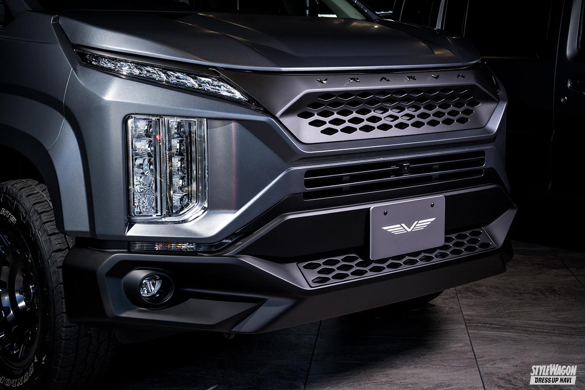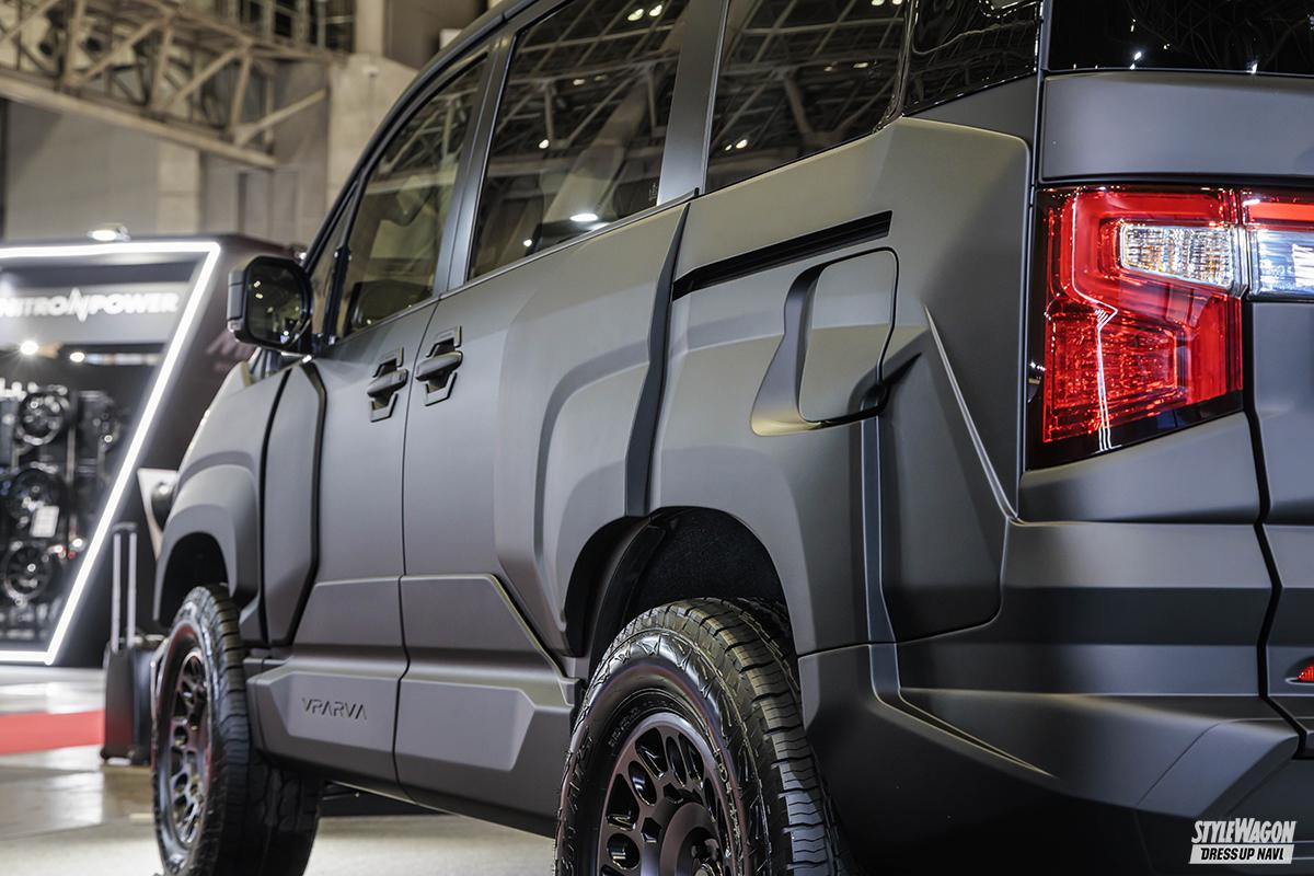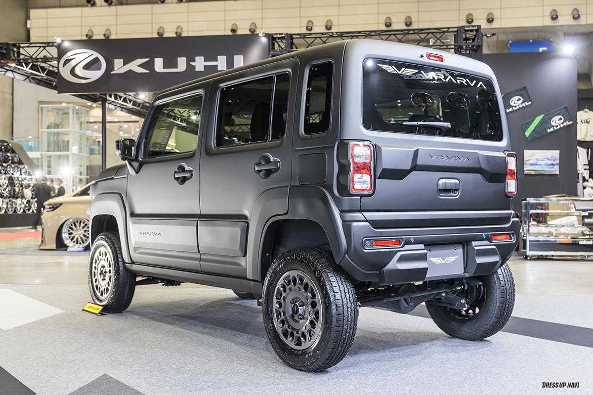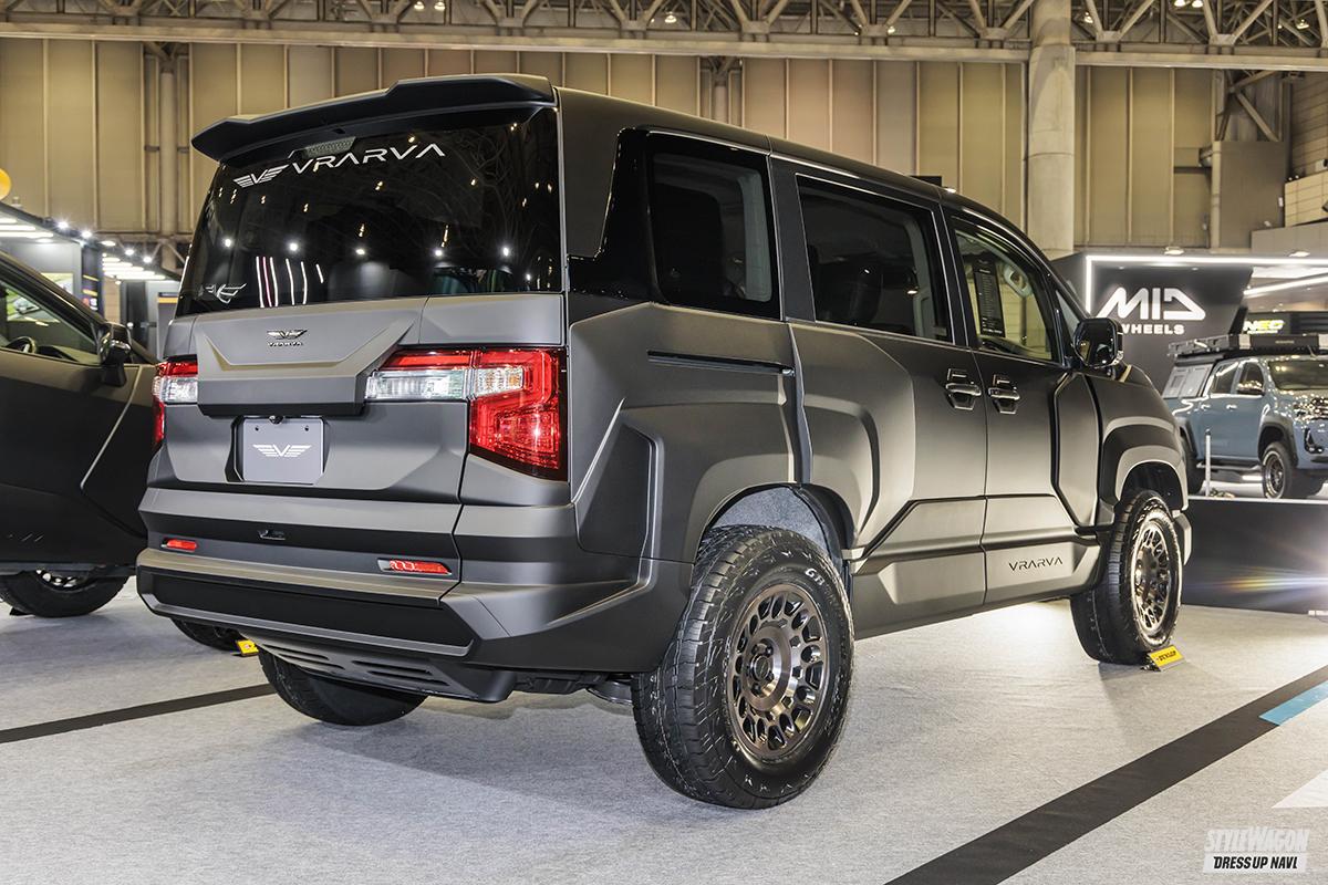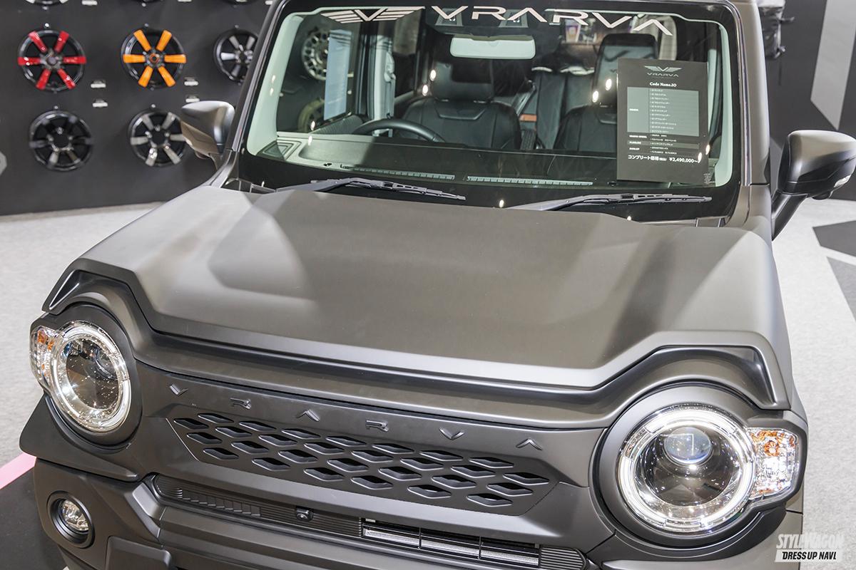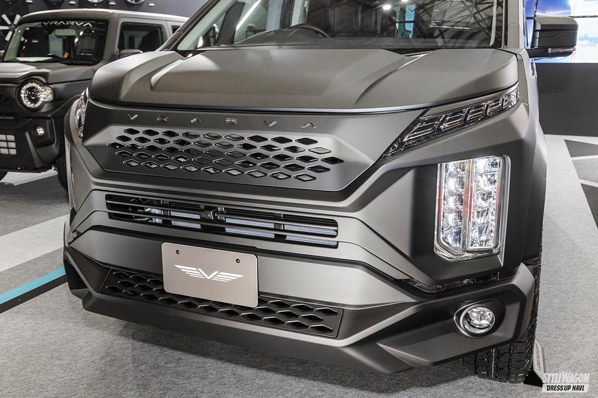 近未来&ミリタリーをテーマとしたカスタムコンプリートカーブランド、ブラーバ。昨年の東京オートサロンではRAV4をベースとした第一弾、マーズの発表で話題をさらったが、今年もブラーバは変わらず近未来。新作2モデルを展示し、オリジナリティあふれる独自の世界観をアピールしてくれた。デリカD:5をベースとしたコンプリート、オーカスは圧倒的にメカニカルで攻撃的な装いが魅力。アウトドアシーンでもアーバンシーンでも特別な存在感を放ってくれる。第3弾となるイオはハスラーがベース。こちらもミリタリーだ。