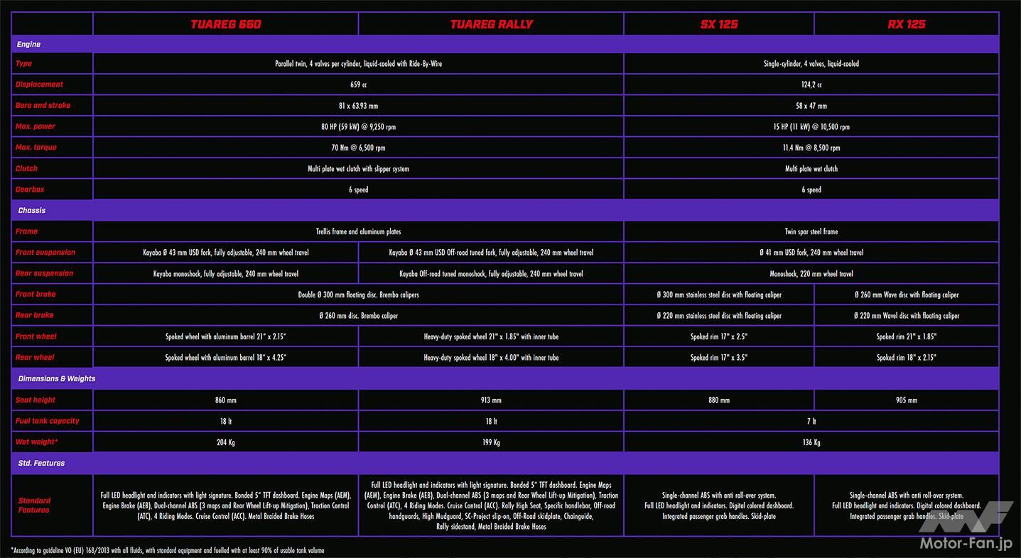 原付二種でここまで存在感のあるオフロードバイクは国内モデルに存在しない。その理由は生産国イタリアなどEU諸国の免許制度が背景にある。EUではライセンス区分が取得できる年齢によって別れていて、16歳以上で取得できるA1クラスの免許では125cc以下で最高出力が11kw以下であることが定められている。18歳以上になると取得できるA2ライセンスは35kwまで。パワーなどの制限がないAライセンスを取得できるのは20歳からとなっている。