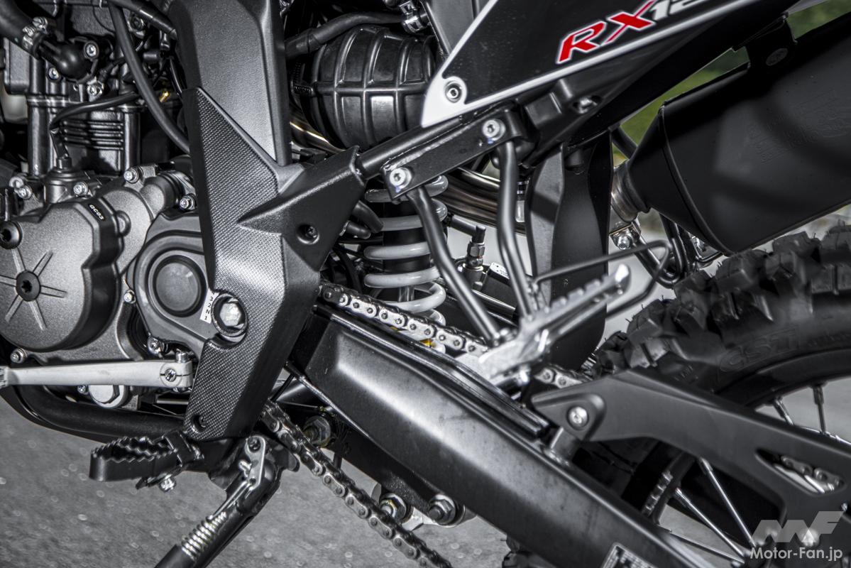 全体的にクオリティは原付2種としてはとても高い。これで49万8300円という価格設定は魅力だ。誰が乗っても面白いというわけではないだろうが、小型二輪免許のライダーや、セカンドバイクとして維持費が安いバイクを探していて、なおかつ高級感のあるオフローダーに乗りたいというのであれば面白い選択肢になるだろう。更にもうひとつ言えば、イタリア製125ccスポーツバイクの多くに設定されている150ccボアアップキットがRX125にも存在する。つまり150ccキットを組み込んで軽二輪登録とすることもできるわけだ。個人的には150cc化したマシンにはとても興味がある。