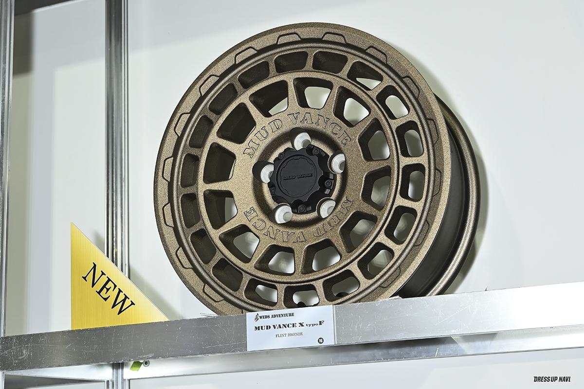 クリムソンからはMGシリーズとディーンシリーズの新作ホイールが登場。「MGアーマーFF」は、ヘビーコンケイブデザインの6スポークと鉄チン風の6つのエアホールを融合。さらにリム側ディスクに「ARMOR BOLT」と呼ばれる太めのボルトを配置したタフな仕様が特徴。「ディーンBJメキシカン」は2×5スポークと鉄チン風エアホール、メカニカルボルトを融合。どちらも懐かしさの中に新しさを感じさせるネオクラテイストにタフなデザインの魅力的なホイールとなっている。