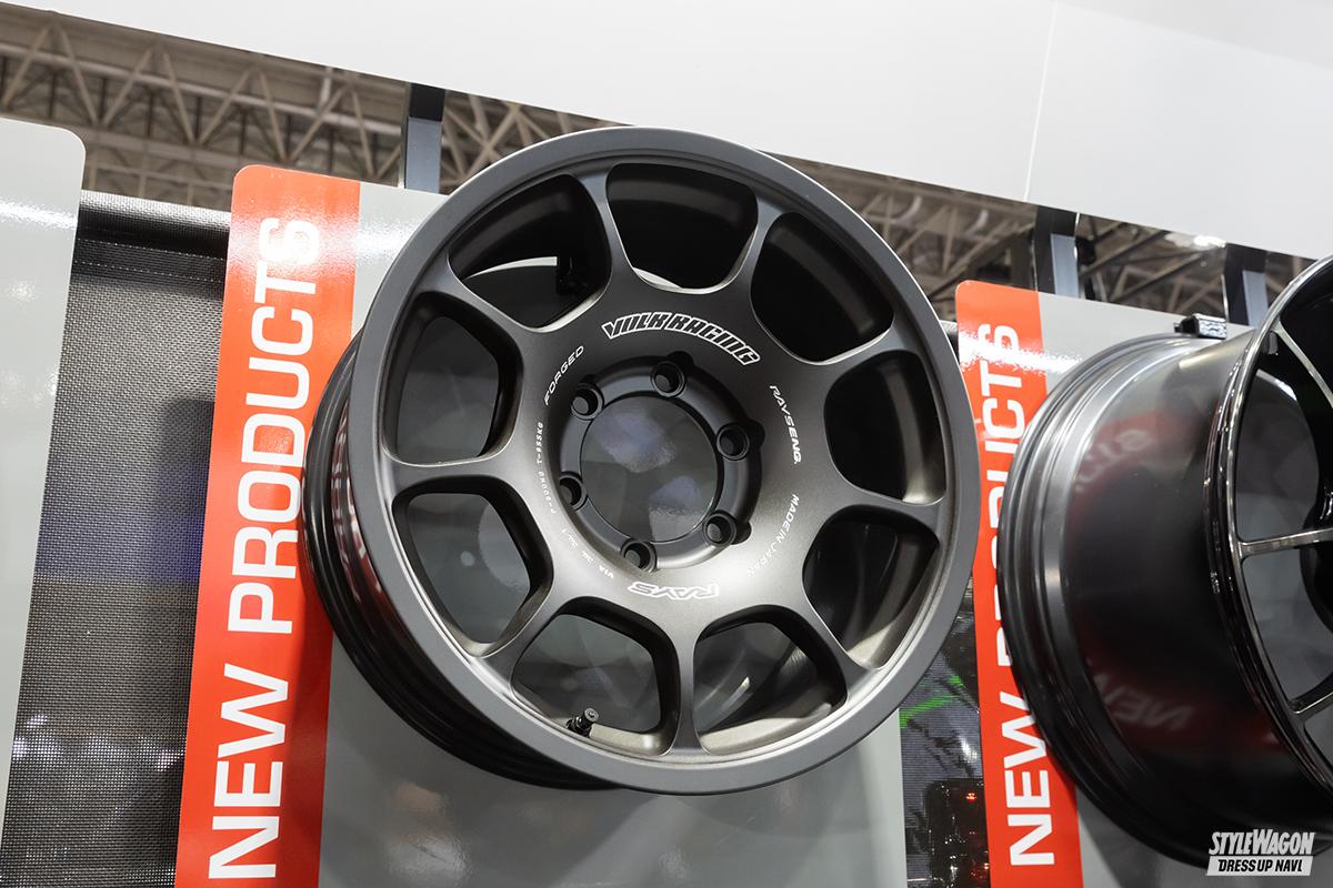 今年のサロンでは例年を凌ぐスケールで新デザインや新色の追加など、最新モデルを一気に披露したレイズ。その中でも注目を集めていたのが4駆&SUVをターゲットとしたアイテム群。鍛造製法で街乗りのみならず競技用としても人気のA-LAP、カジュアルなベルサス、スポーティなチームデイトナ他、各ブランド共にラインアップを拡充。ジムニーからラージクラスまで、これまで以上に高い支持を集めそうだ。
