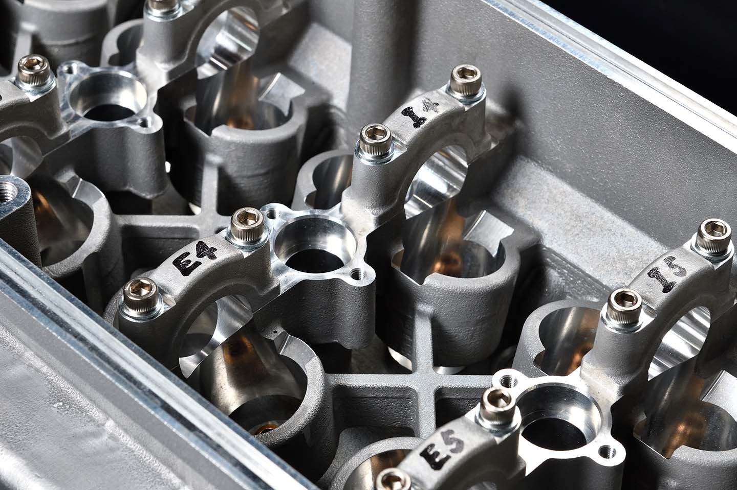4気筒LZのカムキャリア構造を廃止し、カムとリフター支持部は一体構造へと変更。ヘッド外に設けた鋳物一体形状のウォーターアウトレットと含めて、ブロックの剛性不足を補うヘッドの高剛性を実現。