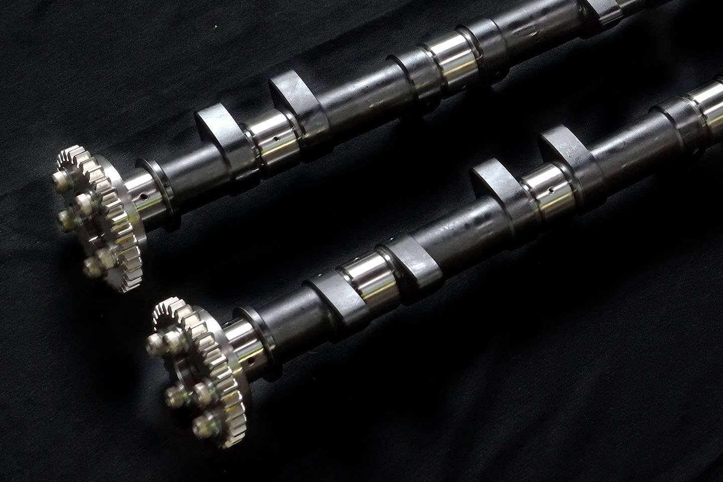 カムは作用角264度、272度、280度、288度、296度の5タイプを予定で、IN/EXカムは入れ替え可能として選択の自由度を広げる。バルブリフト量も最大12mmまでに対応可能で、吸入空気量増加による性能向上を目指した。カムは高回転での油滑のためにオイルギャラリーが設けられているのもポイント。