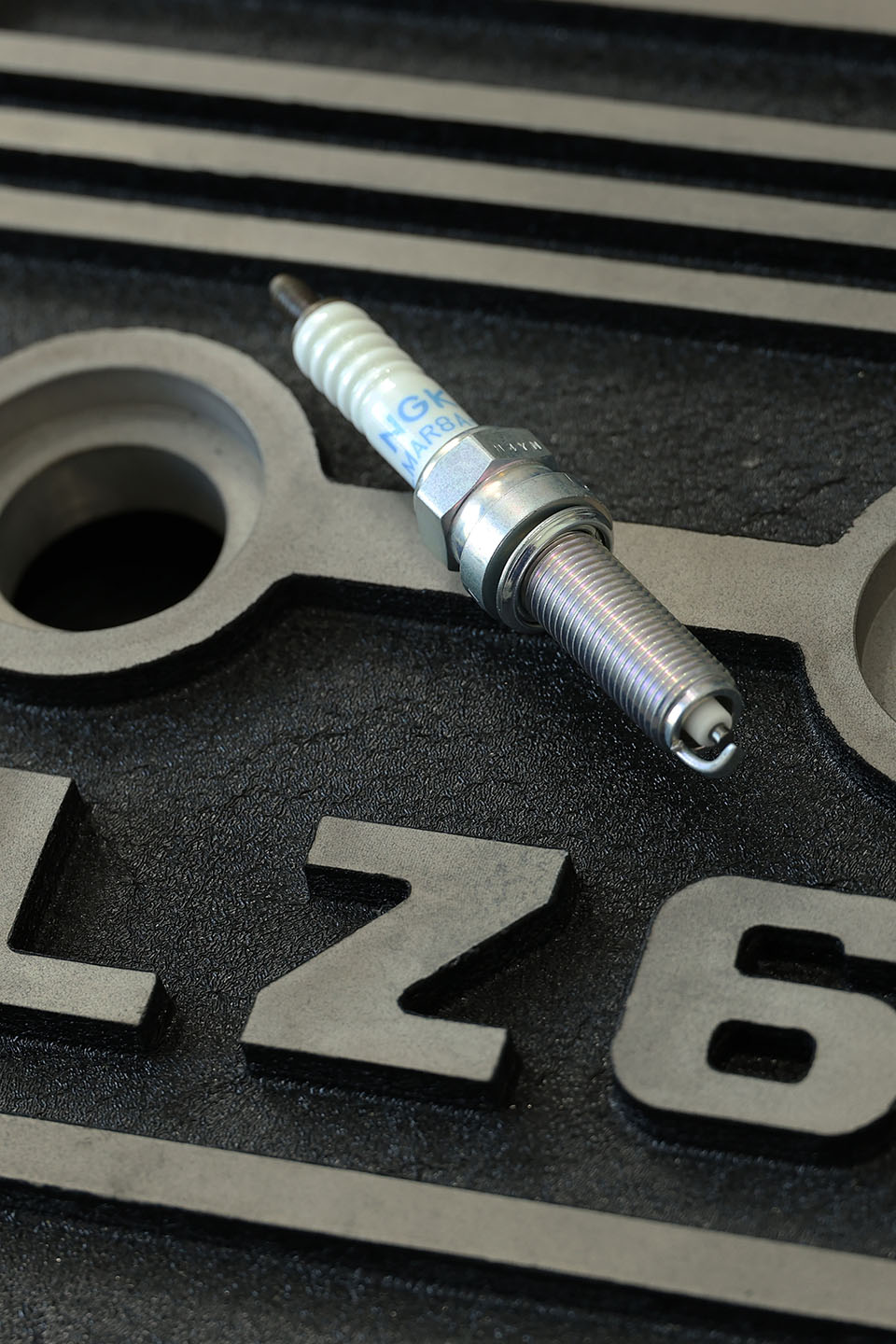 点火プラグは4気筒LZと同じM10サイズだが、ロングリーチタイプを採用することでプラグまわりの冷却性能を向上。合わせてプラグまわりのウォータージャケットも拡大されている。
