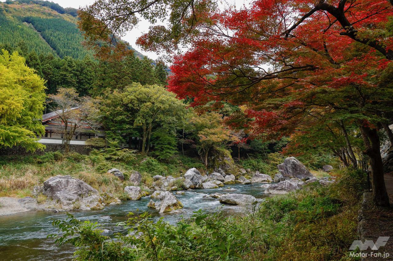 今回はこれまで撮りためたライブラリーの中からではなく、つい先日撮影したばかり。当コレクションに加えた、フレッシュな画像をお届けします。場所は東京都下、バイクでトコトコと気ままなツーリングを楽しむのにちょうど良い距離にある青梅市の「御岳渓谷」です。上の写真の様に秋らしい、紅く色づき初めた景色は日に日に鮮やかさを増し、深い色合いの澄んだ渓流とのコントラストが、ますます綺麗になっています。
