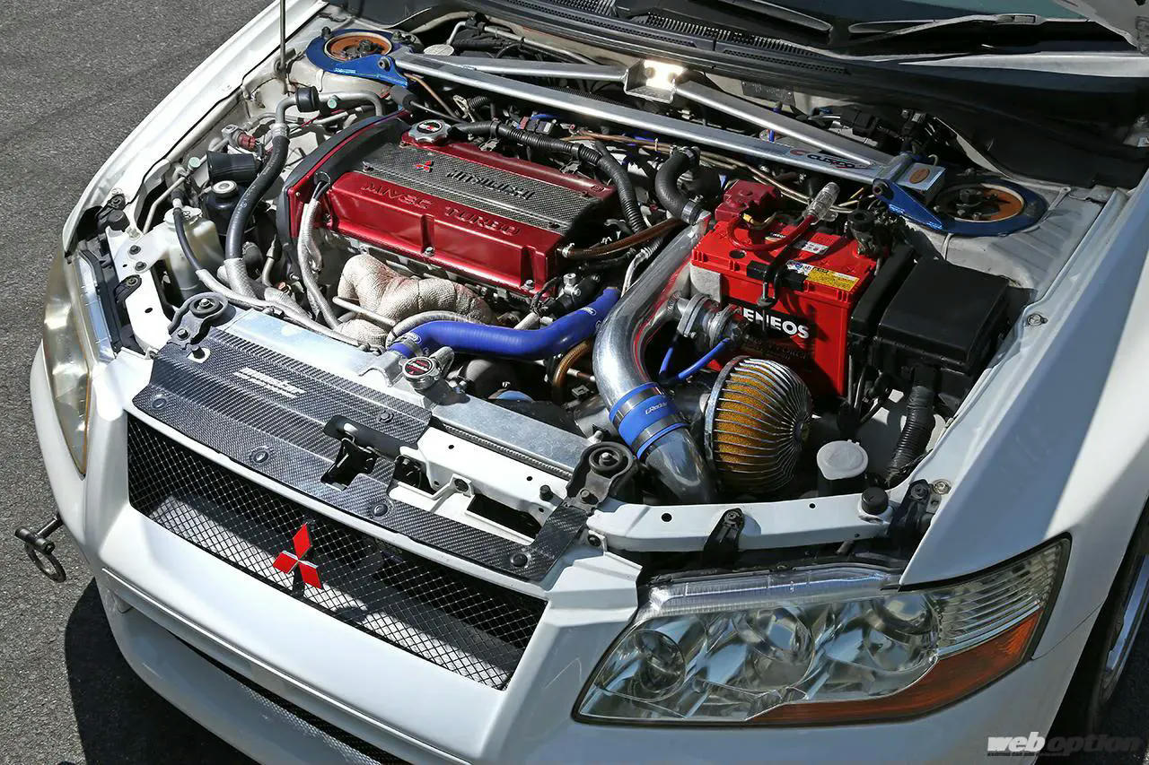 オーナーの要望は、メインステージとしているミニサーキットでの戦闘力アップ。「下からピュンピュン回って上ではパワフル」という特性を目指して様々なメニューが検討されたが、それを実現させるための核として選んだのがランエボ9に搭載されるMIVEC仕様エンジンだった。