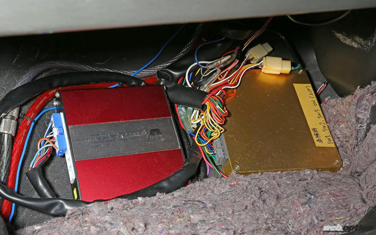 エンジンコントロールは、エアフロレスの基本制御をパワーFCで行い、燃調と点火時期はF-CON Vプロ3.3が担当。可変バルタイ制御用のVマネージも加え、計3台のコンピュータを連携させている。