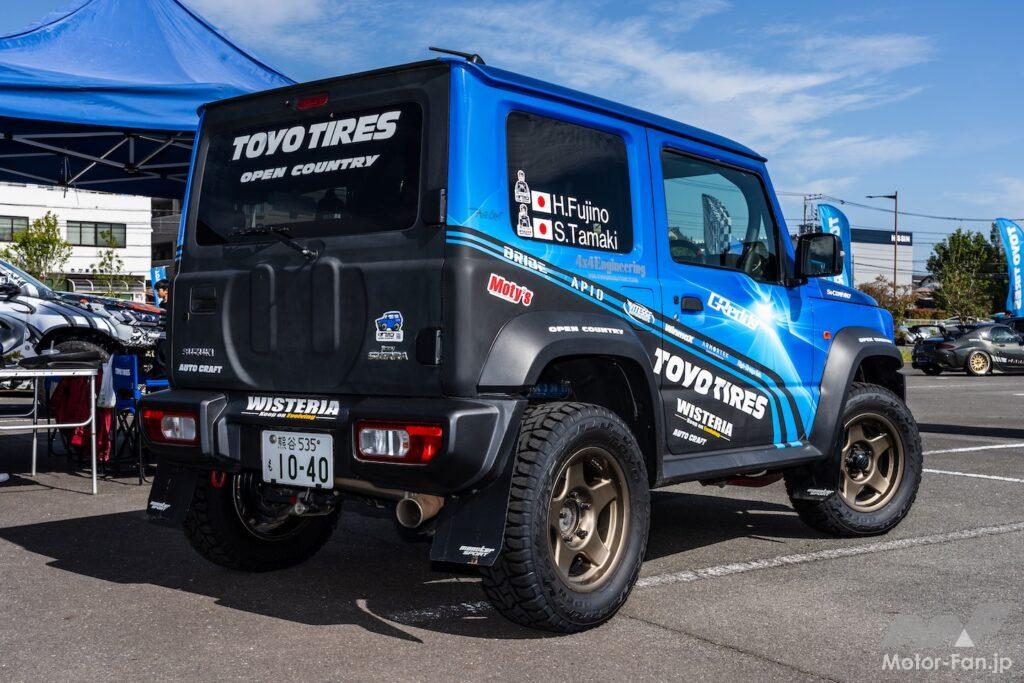 そして、OPEN COUNTRY R/Tに「RAYS FDX-J 」をするブルーのジムニーは、トーヨータイヤのイメージである青に全塗装したのかと思えば、ジムニー純正色のブルーだそう。同じくブルーに仕上げたミニチュアカーやラジコンなどとともに、ジムニー愛とトーヨータイヤ愛を感じさせる1台だ。