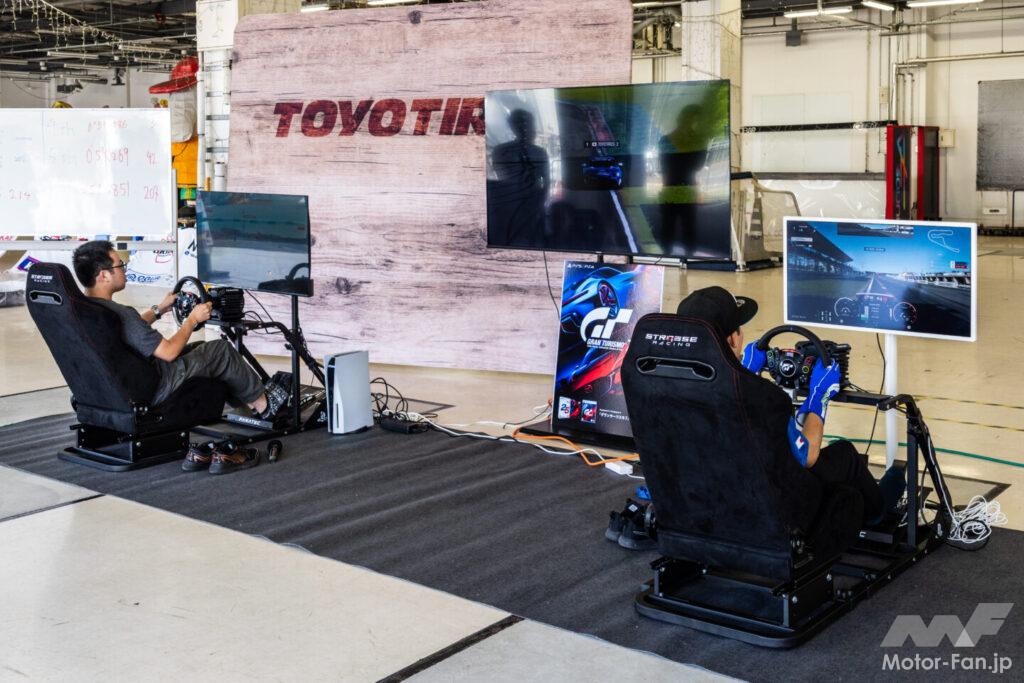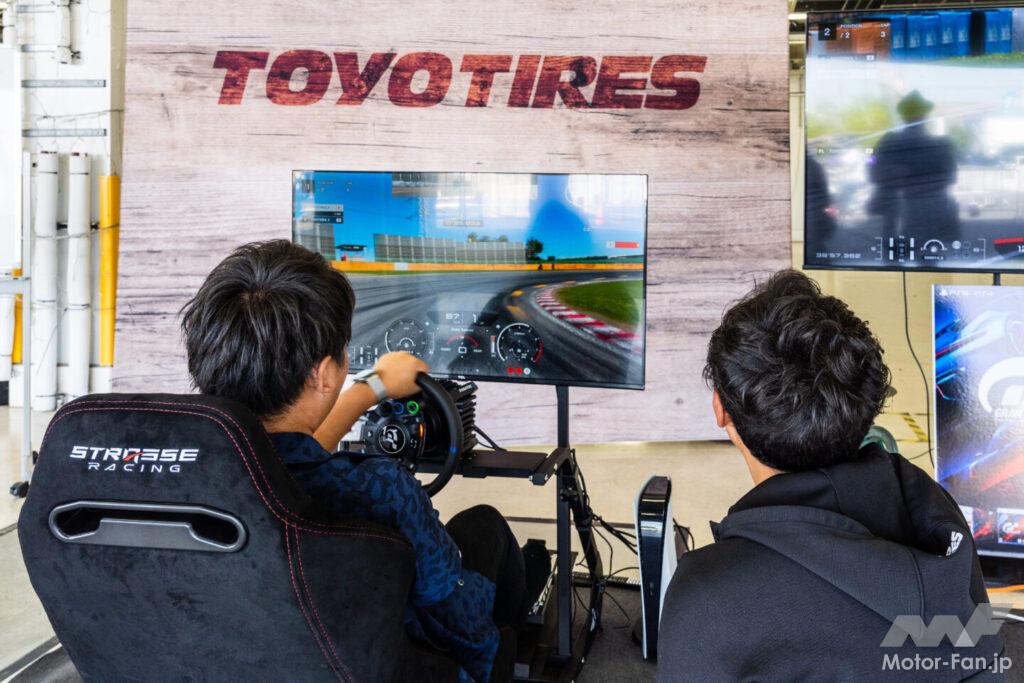 場内ではその他に、TOYO TIRESの社員でありグランツーリスモの世界チャンピオンである宮園拓真選手とのグランツーリスモ対決が行われ、一般参加ユーザーが見事世界チャンピオンに勝利していた。