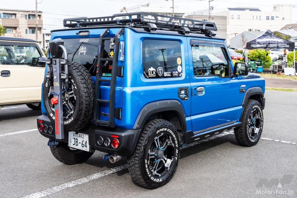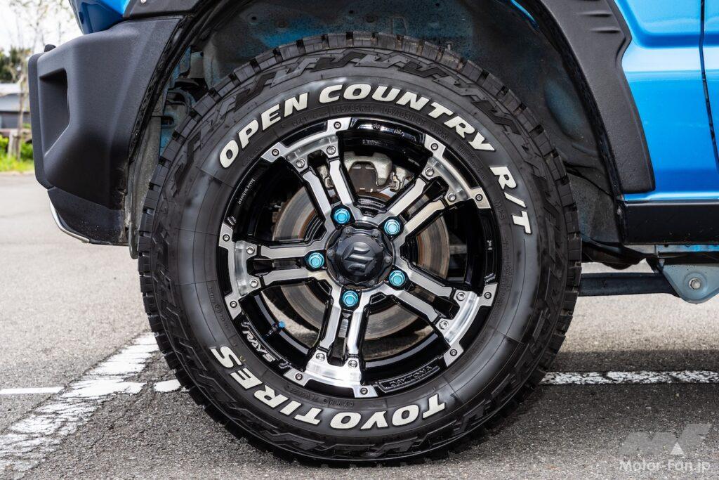 そして、OPEN COUNTRY R/Tに「RAYS FDX-J 」をするブルーのジムニーは、トーヨータイヤのイメージである青に全塗装したのかと思えば、ジムニー純正色のブルーだそう。同じくブルーに仕上げたミニチュアカーやラジコンなどとともに、ジムニー愛とトーヨータイヤ愛を感じさせる1台だ。