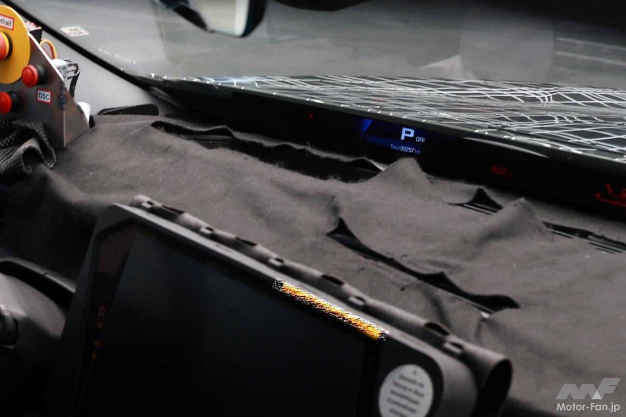 インテリアの大部分は黒い布で覆われているものの、パノラミックiDriveが搭載されることがわかる。これは大きな転換点だろう。従来のインストルメントクラスターが、フロントガラス下部に配置されたピラー・トゥ・ピラーの細長いディスプレイに置き換えられたのだ。