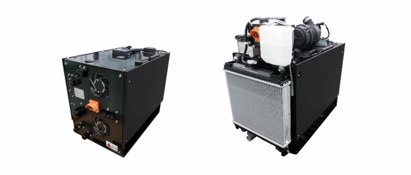 今回発売される発電機用8kWFCモジュールは、主要部品のエアコンプレッサーや水素循環ポンプなどを内製している豊田自動織機の強みを活かした最適設計によりコンパクト化が実現されており、小型FC発電機として建設現場や屋外イベントなど様々な利用シーンへの導入が期待されている。