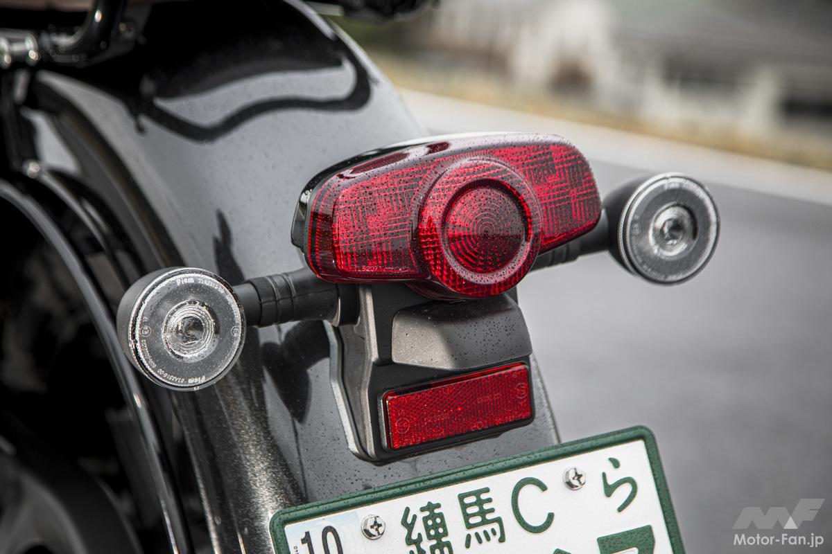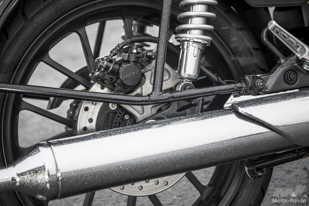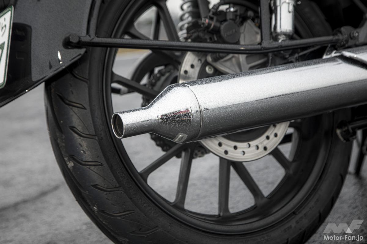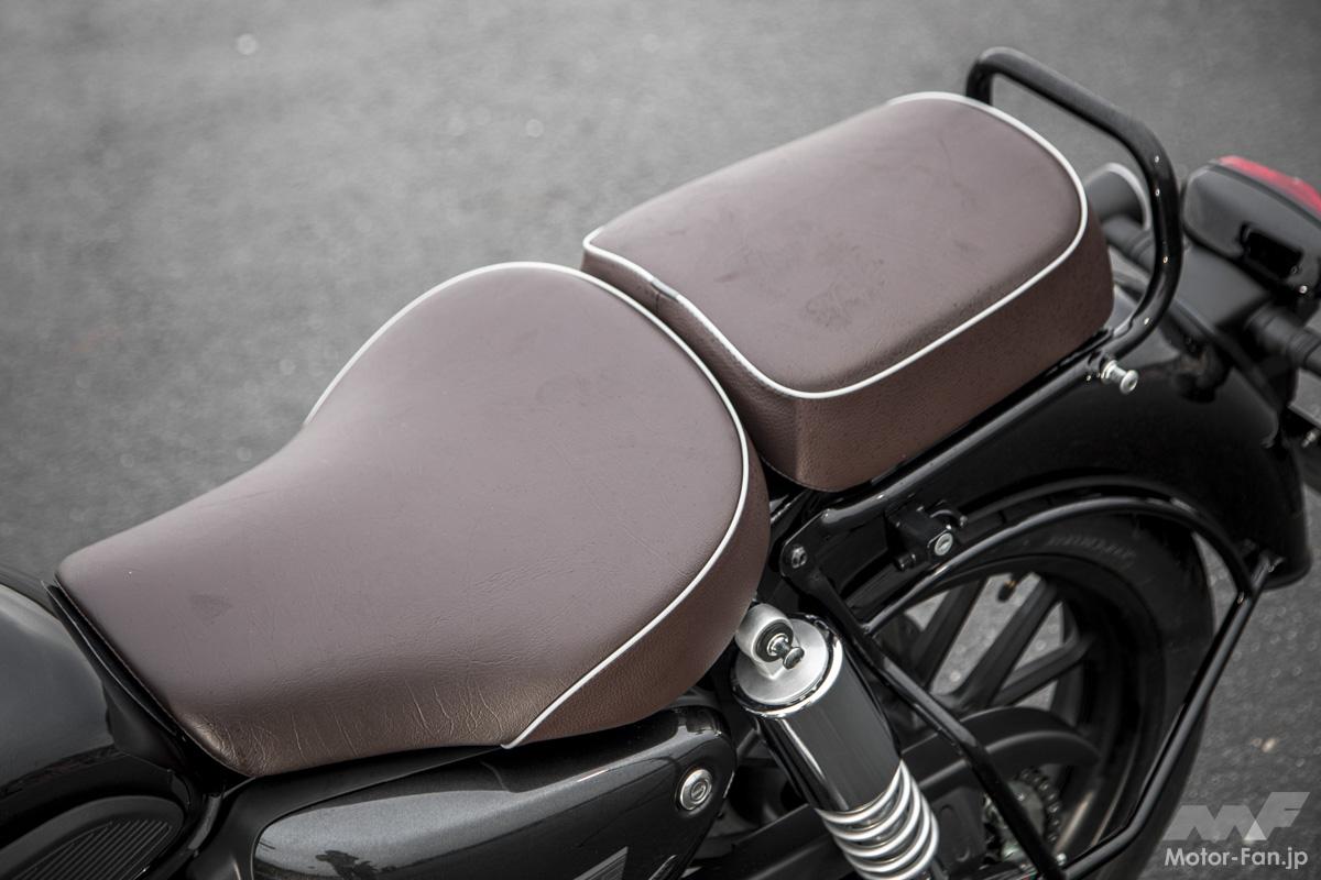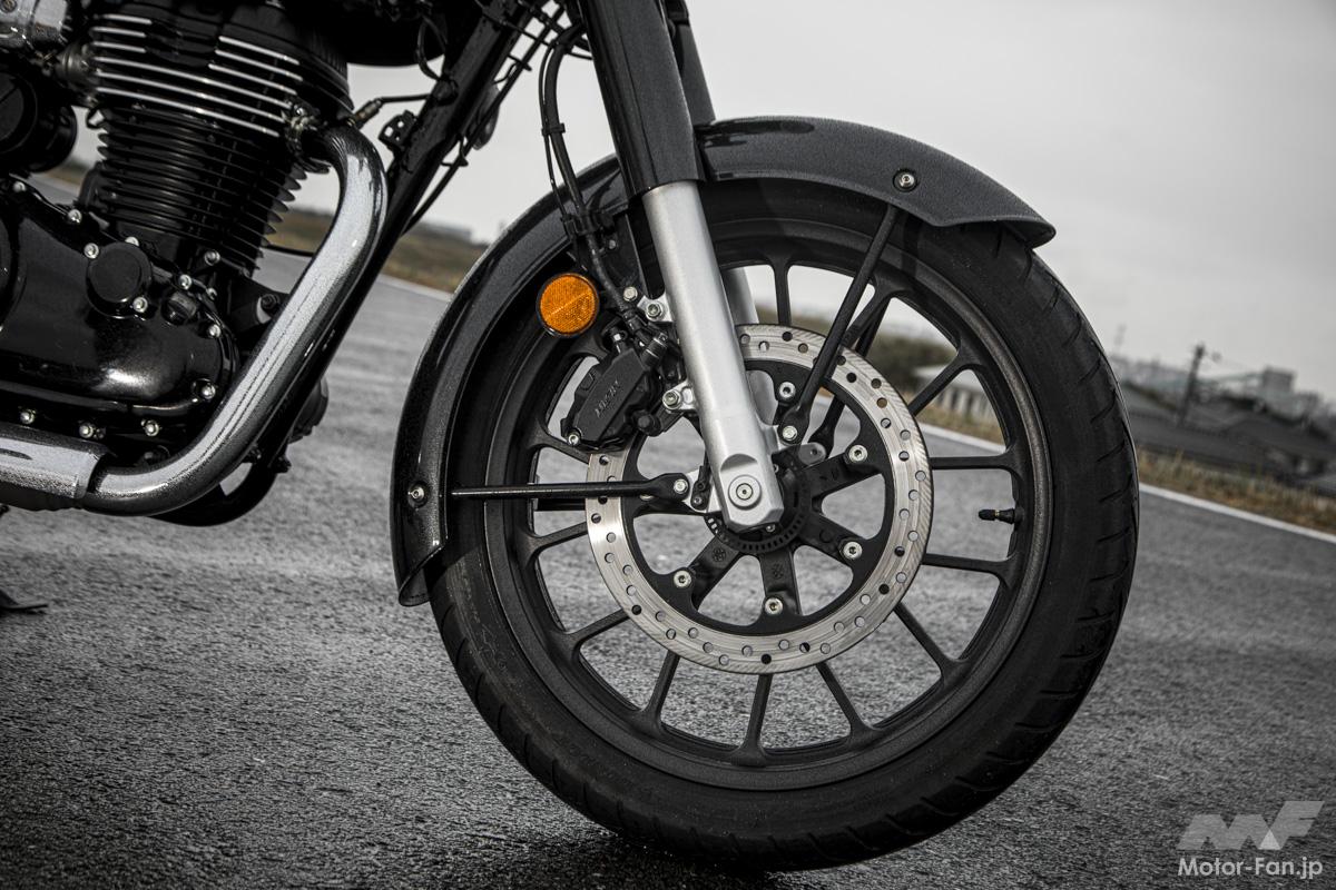 ハンドリングに関してはGB 350よりも安定感が高くなったような印象を受けたのだが、車体自体はGB350と変わっていないので、これは外観からくるイメージの影響を受けたものだろう。基本的にハンドリングはニュートラルで安定性が高く、どんなときでもライダーに安心感を与えてくれる。コーナーを責め立てるような性格ではないけれど、クセがないから交差点などを曲がるときなどは少しキッカケを与えてやるだけで自然にバンクしていく。適度なペースで走るのであればワインディングも楽しめてしまう。