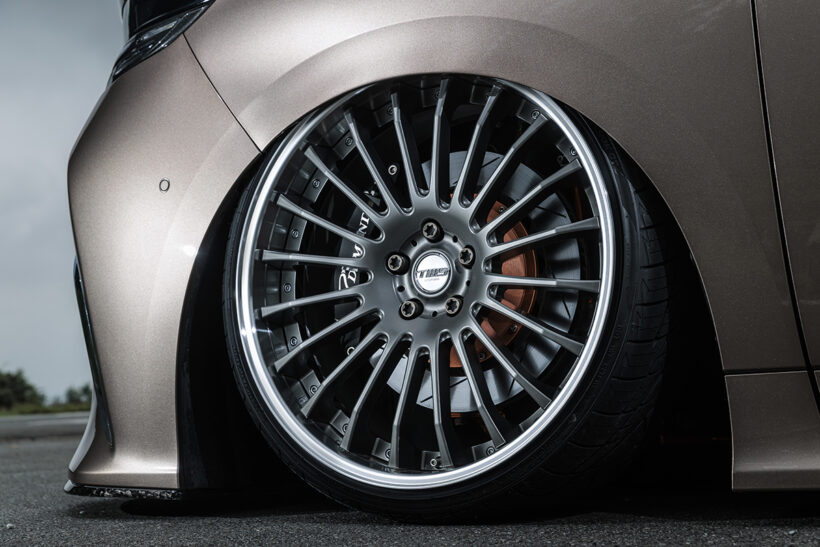 パーツ(カスタム) 22インチで『アルファード』を極低領域へ! 鍛造ホイール“TWS”のモデル違いを左右履き!!【写真・14枚目】 TOYOTA 40ALPHARD(令和6年式) Specifications EXTERIOR●フロント=レヴァージュ、ミラー・ピラー類=フォージドカーボン化 TUNING●エアサス/アーム類/ブレーキ=ティーディメンド、マフラー=秦製作所/他 Production SHOP●B.L.Style OWNER カトーさん 当初ホイールはショップのスタッフも含めて多数決で1本に決めることになったが、見事に意見が真っ二つに分かれて両方履くことになったとのこと。 TWS Exlete118F ExeWHEEL:22×9.5J TIRE:235/30(ヴェノムパワー) TWS Exlete 118F ExeWHEEL:22×9.5J TIRE:235/30(ヴェノムパワー) この画像の記事を読む