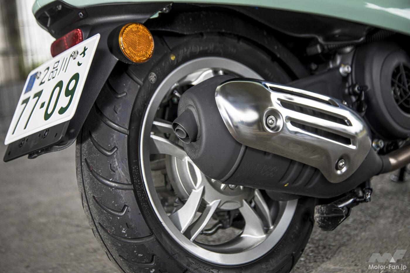 また快適なのはエンジンの特性に止まらず、直進安定性に優れる落ち着いた乗り味も見逃せない。前後ホイールサイズは12インチだが、1340mmのロングホイールベースが奏功して安心感を覚える。