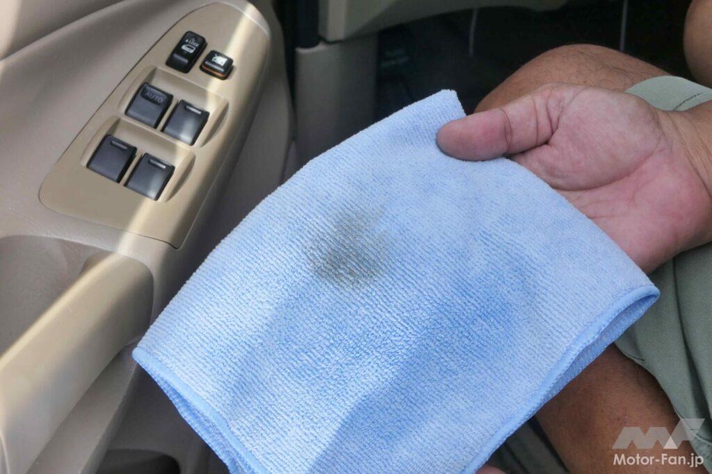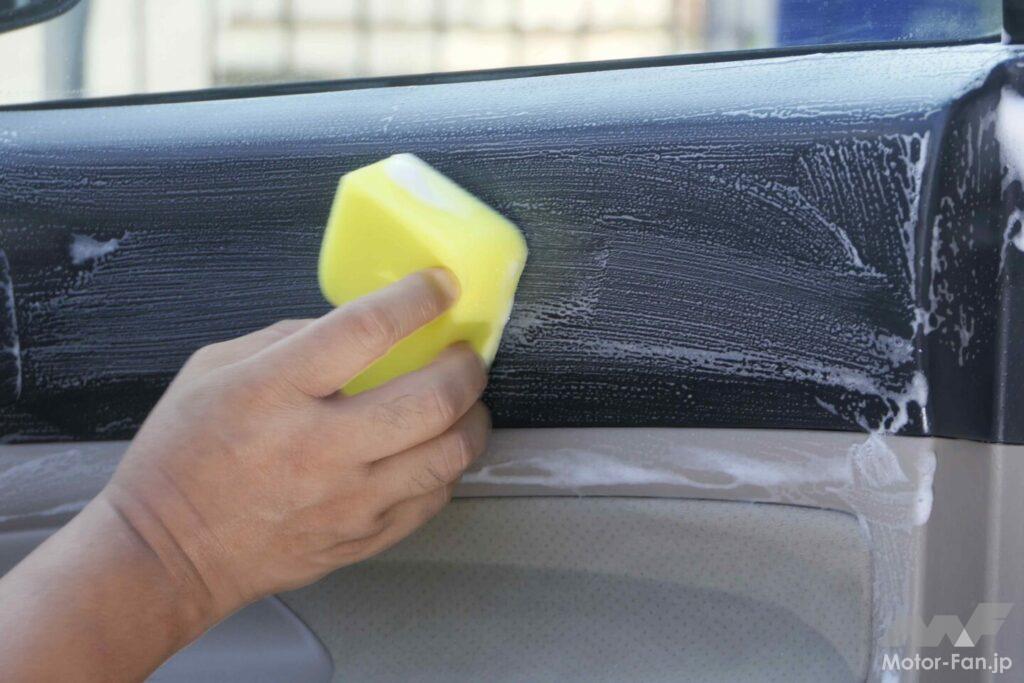 もちろん、せっかくクリーナーを用意したため、通常のクロスでは取りきれなかったドア内張りのシボの奥に溜まった皮脂汚れなど、細部の汚れまで一掃することにも活用。専用グッズとのコンビネーションによって、スッキリ度は確実にアップ。あらゆる汚れを撃退し、完全リフレッシュを完了できるだけに、念入り内装ケアには欠かせないアイテムというわけだ。