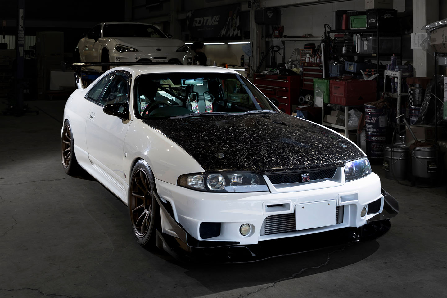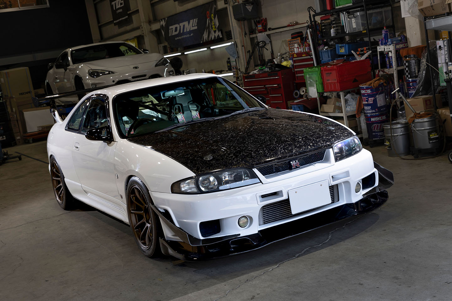 シャープな白いボディに、クラッシュドカーボンのボンネットが強烈な存在感を放つ―。2023年の東京オートサロンで、ブレーキ&オイルブランド〈DTM〉ブースに展示されていた『UNPARALLELLED R33 GT-R』は、まさに“新世代チューナー”の哲学を体現する一台だ。