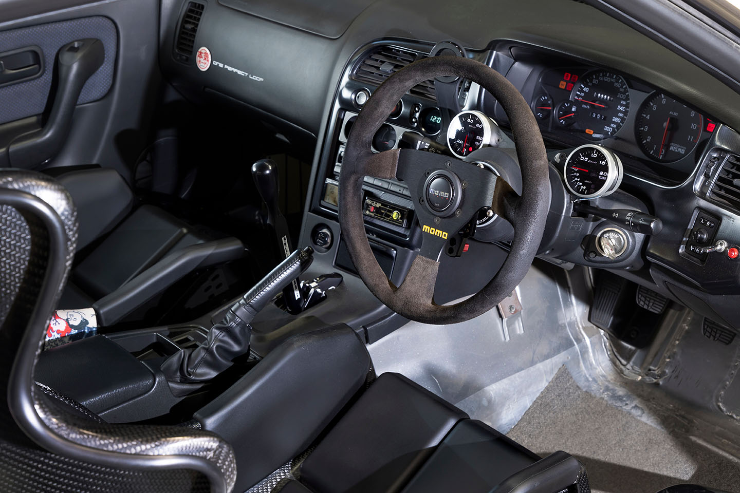 確かに“出物”という表現がふさわしい個体だ。ホワイトボディ状態でのフルスポット増し、HKS 2.8L+GT2530ツイン仕様のRB26DETTによる600psオーバーのスペックなど、ベースの完成度は群を抜く。そこにアンパラレルド流のエッセンスを加え、“機能美を追求したストリートランナー”として再構築されたのが現在の姿だ。