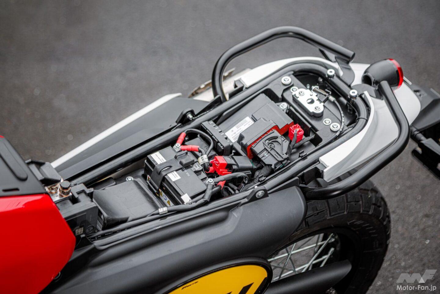 なお、ネックだけではなく新作エンジンを搭載すべく細部も変更されている。エアクリーナーボックスの形状変更などもあり、それに伴ってまたぐ位置は3㎝もスリム化させていて、足つきも向上しているのだ。